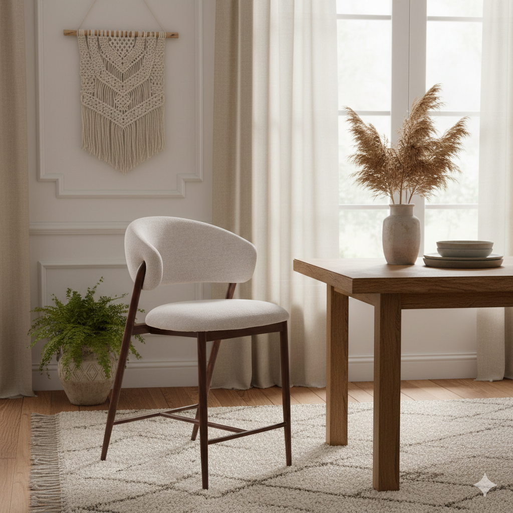 כיסא יוקרתי על רגלי מתכת מרופד בבד רחיץ ונוח לישיבה.