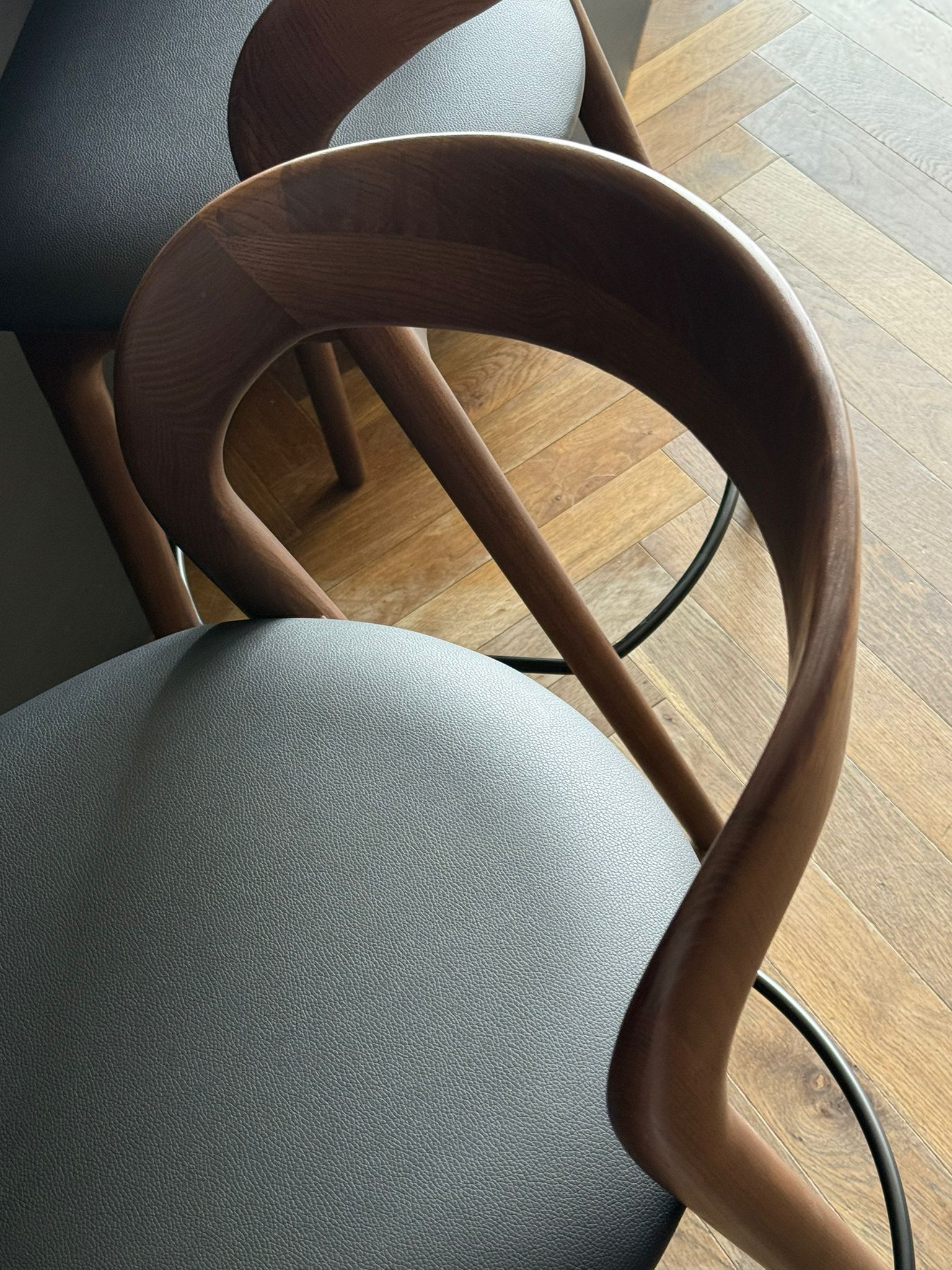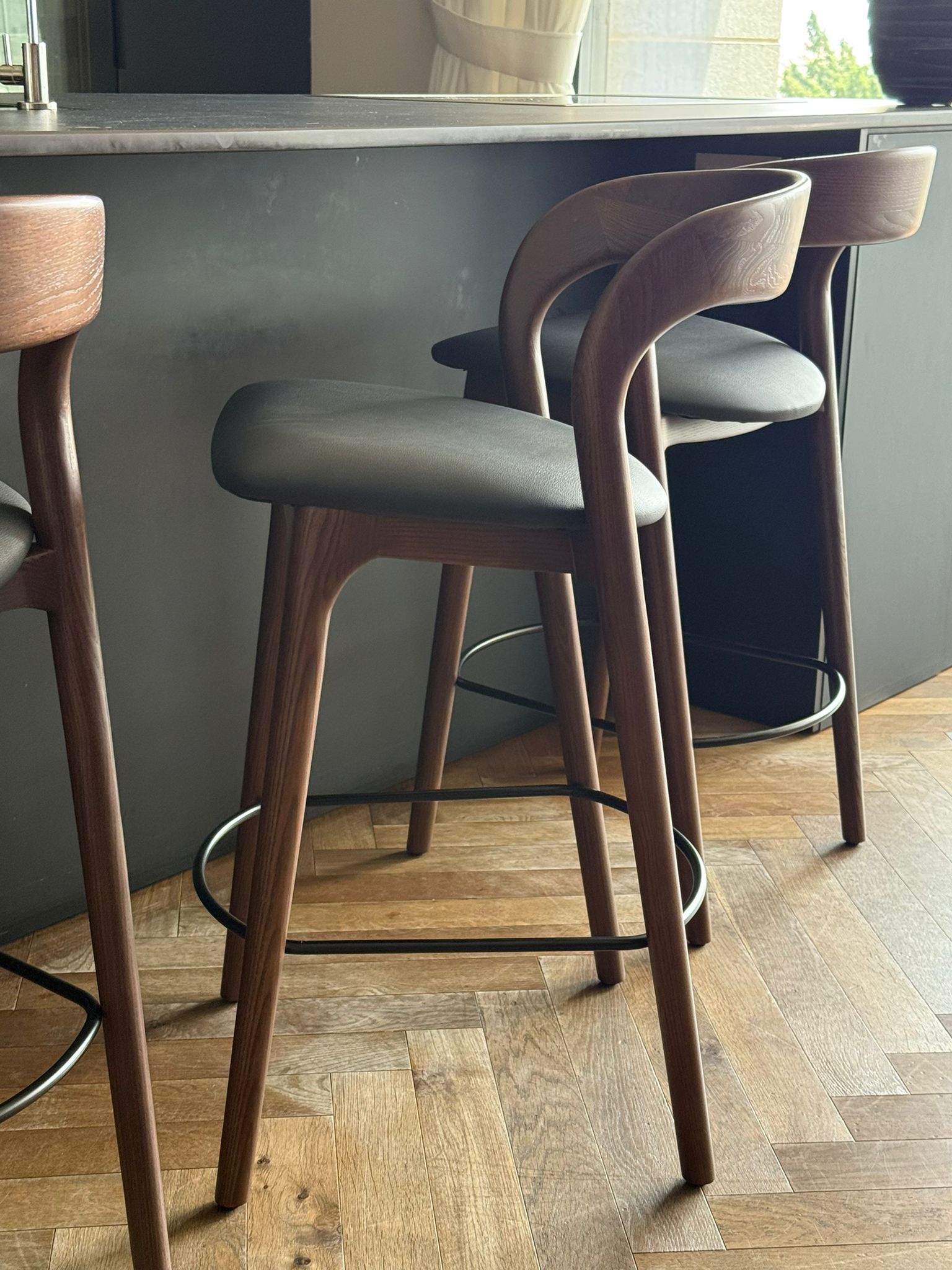 כיסא בר ג’ורדן בגוון אגוז, בעיצוב עכשווי, נקי ומדויק,
