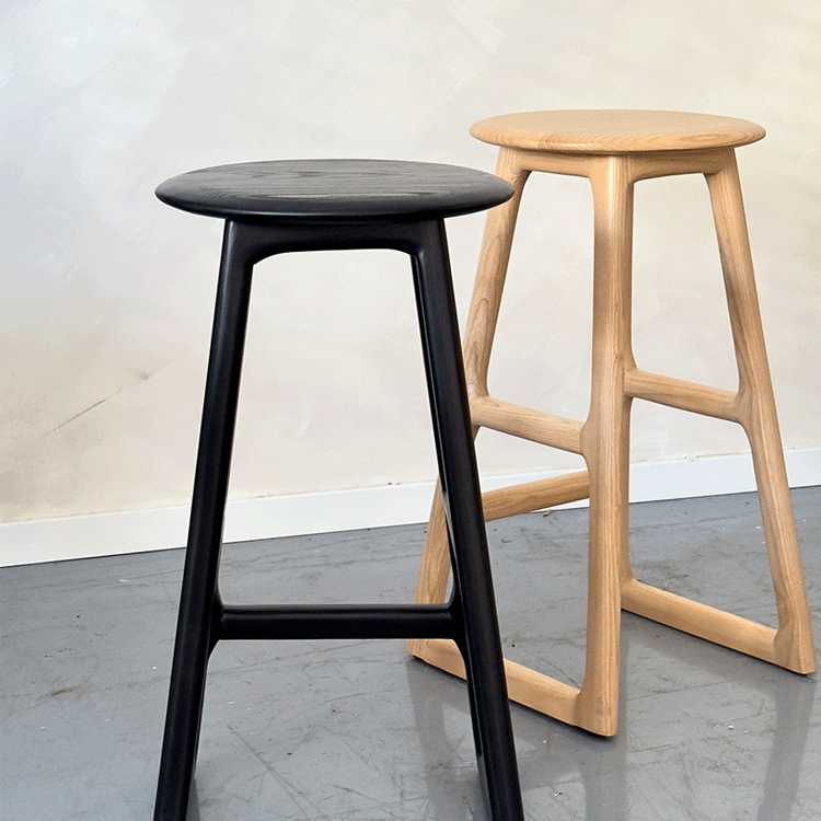כיסא בר עץ מודרני בעבודת יד, משלב קווים נקיים ותחושת חמימות טבעית.