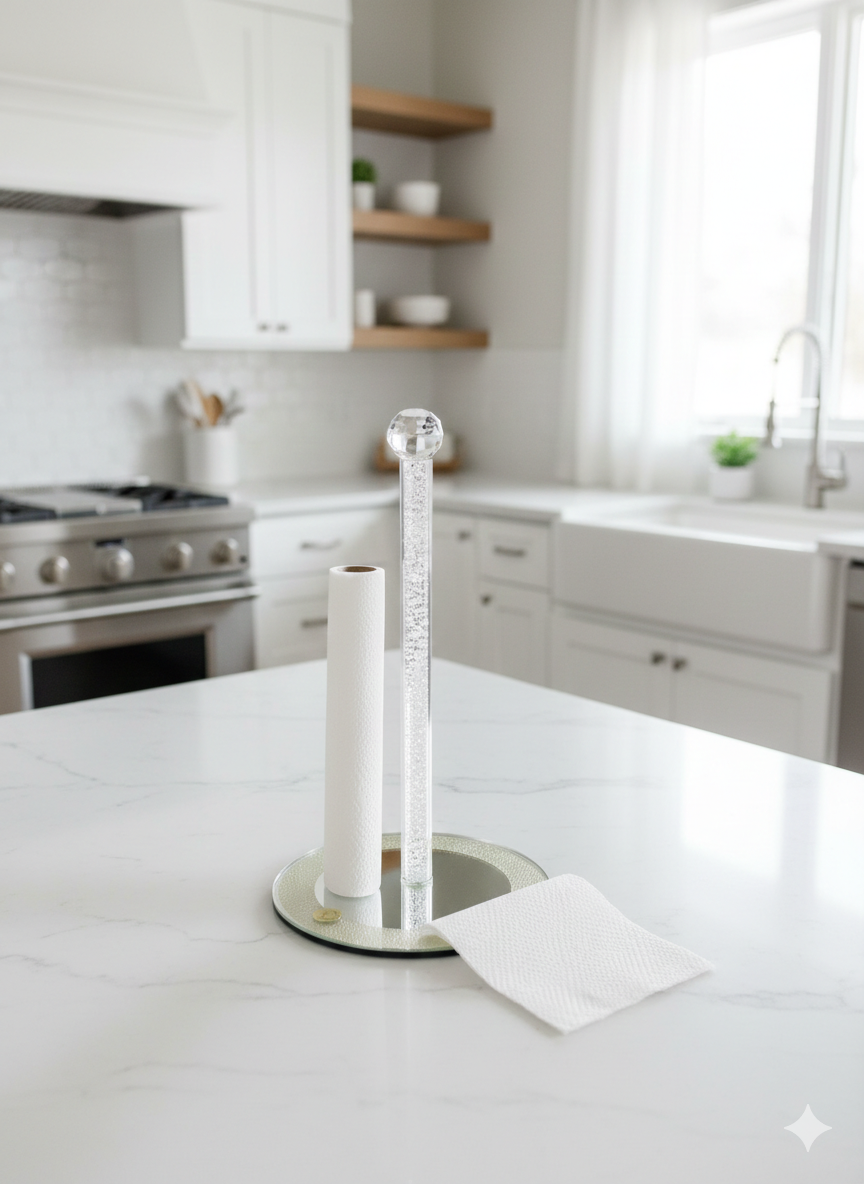 סטנד לנייר סופג בעיצוב יוקרתי עם בסיס מראה ונגיעות זהב.