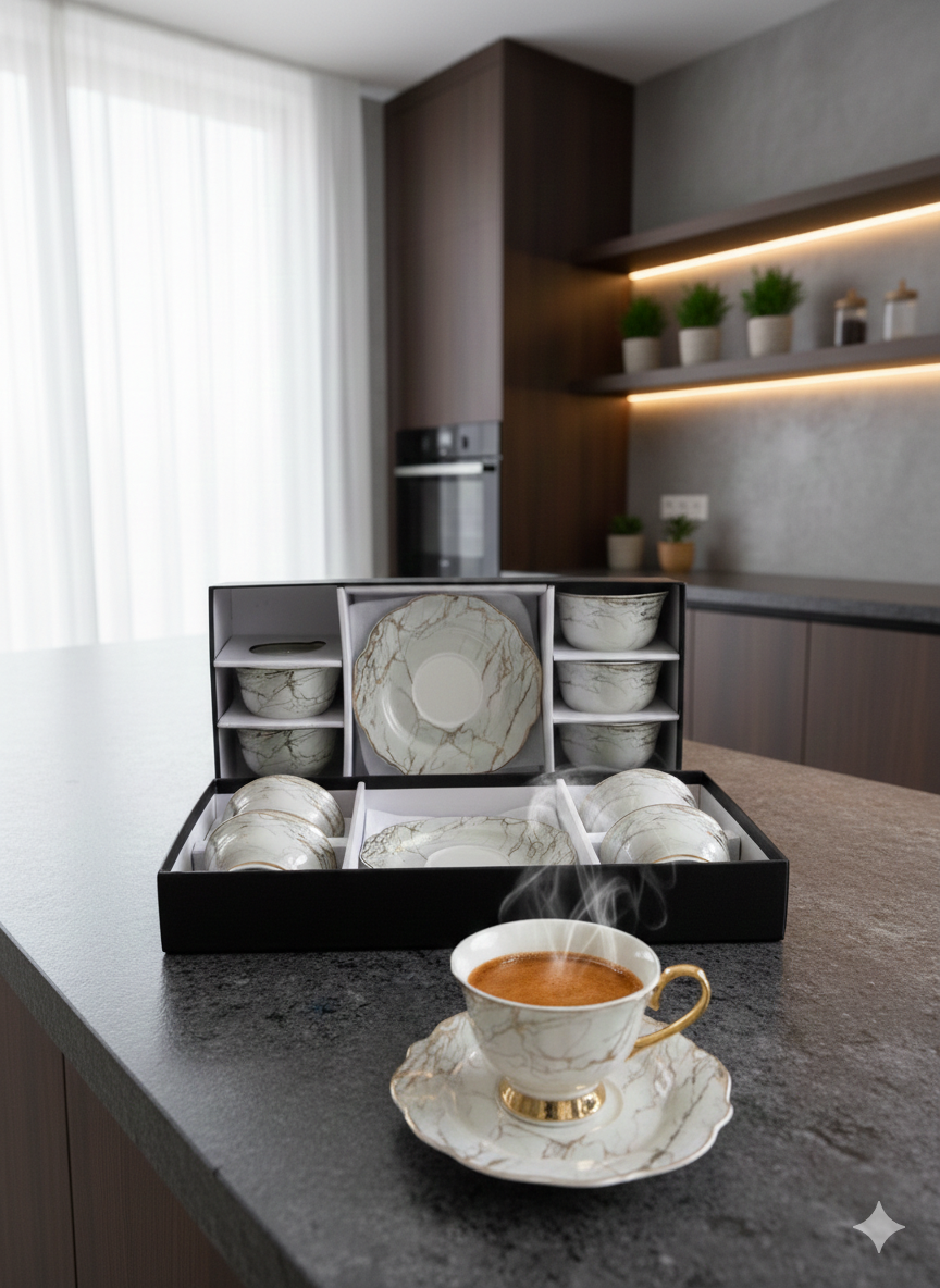 סט הגשת אספרסו מפורצלן – “מרבל”