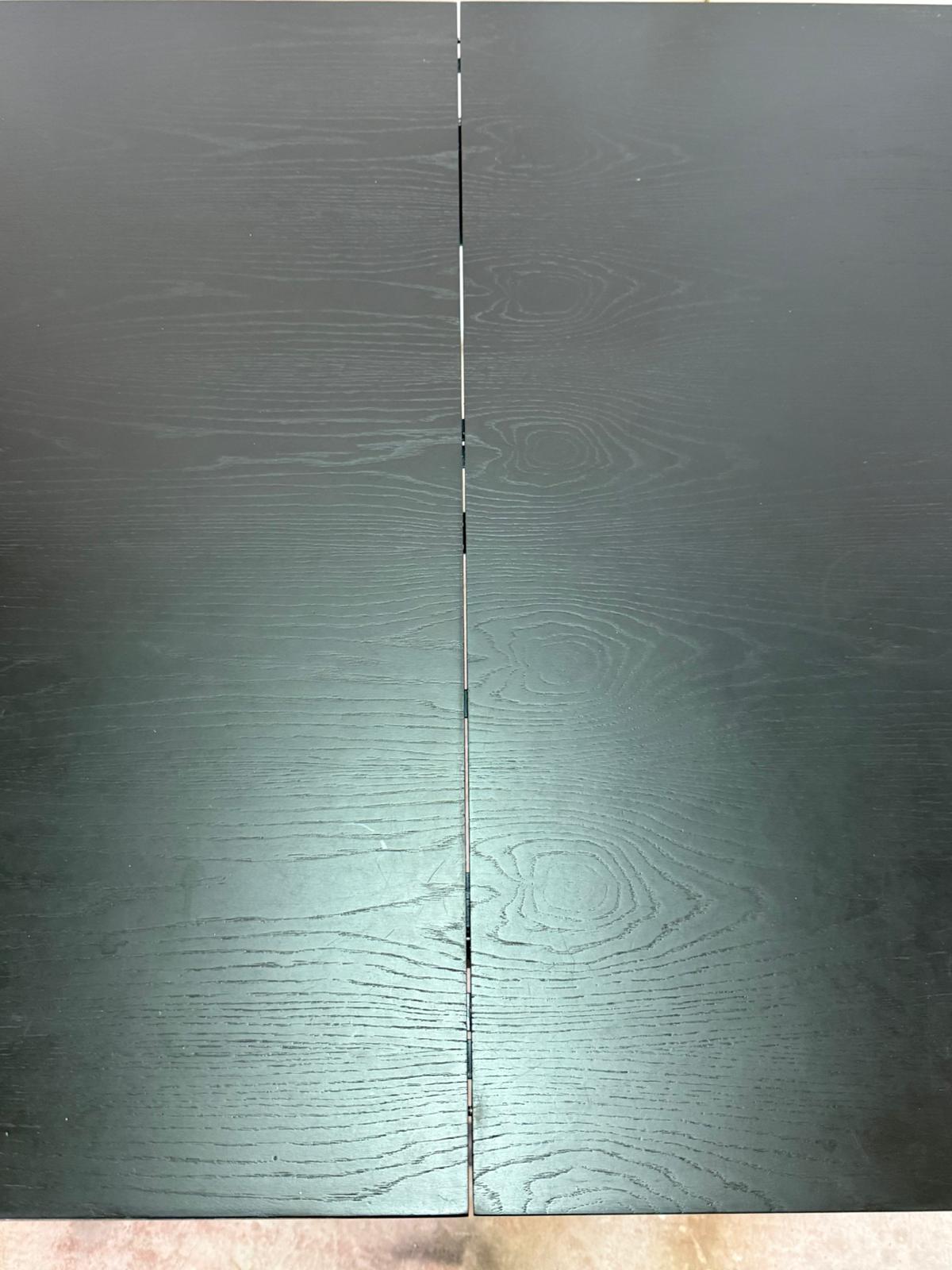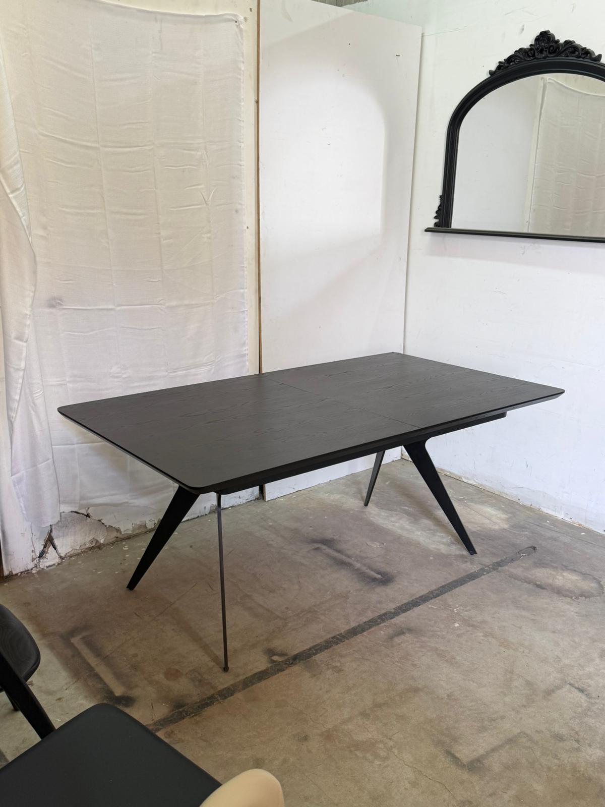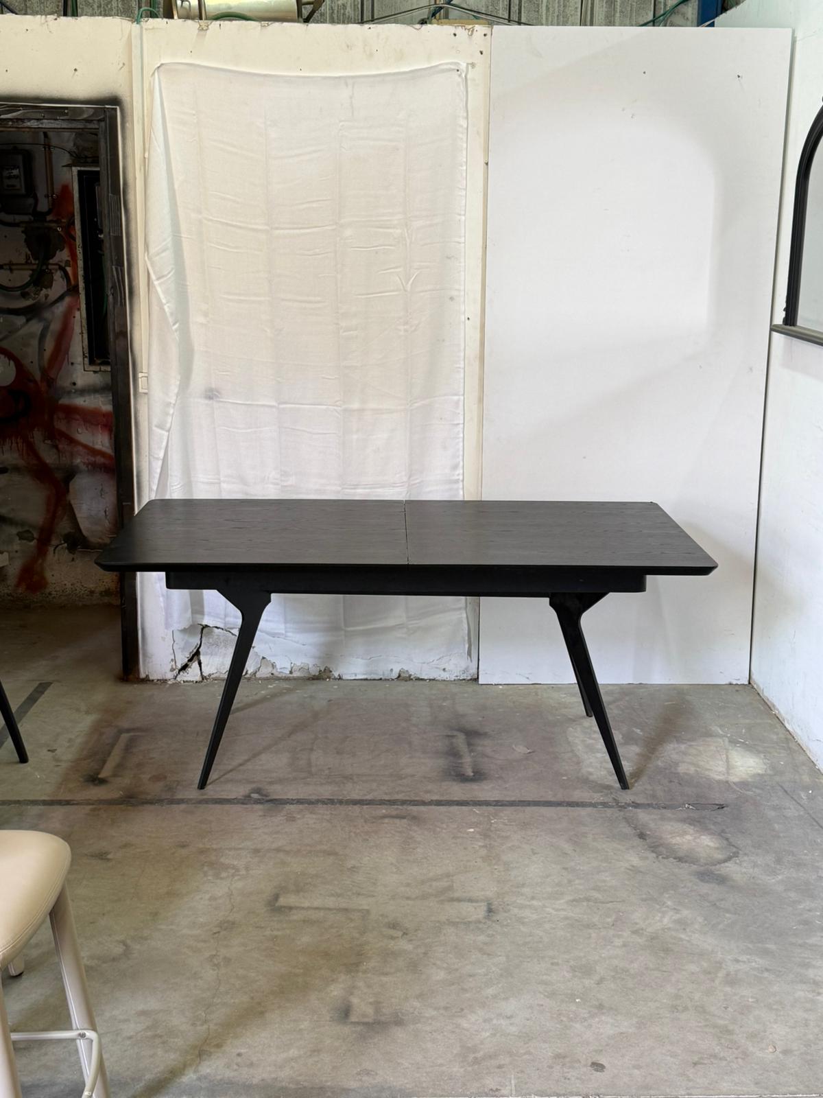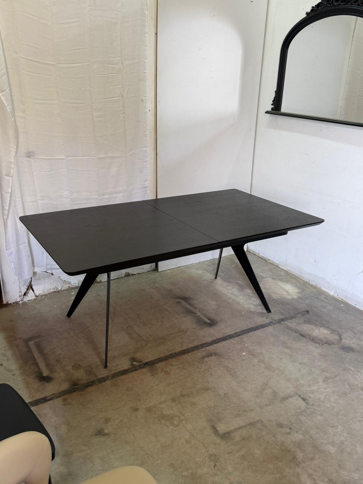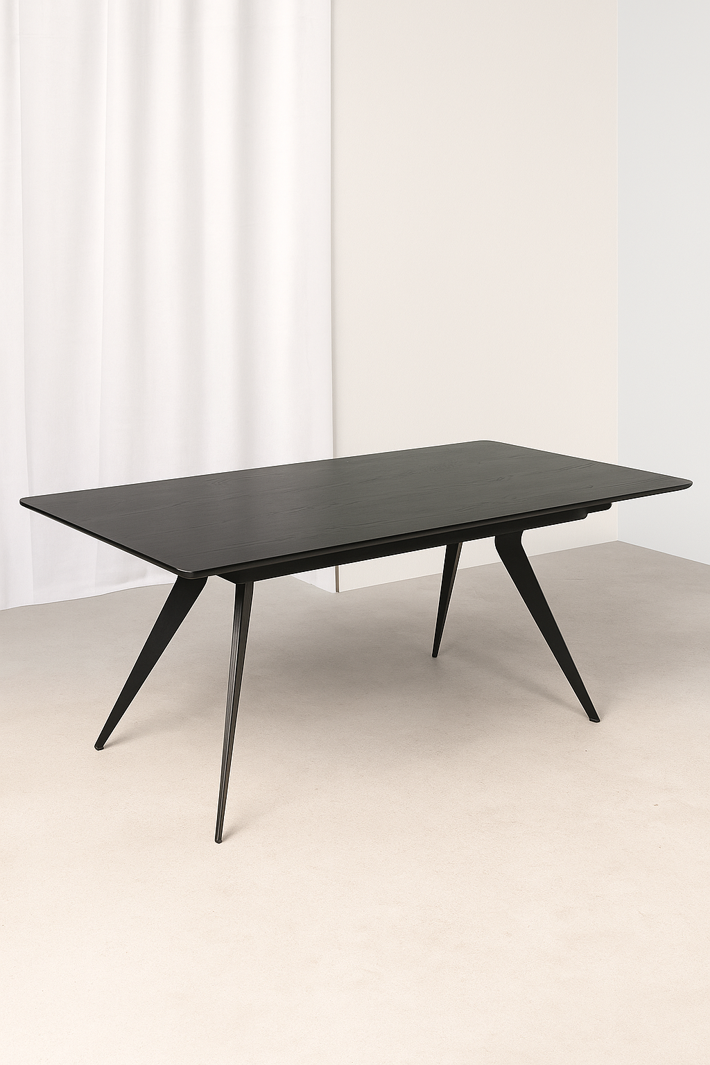שולחן פינת אוכל בגוון שחור טבעי, המשלב מראה חמים עם נגיעות תעשייתיות.