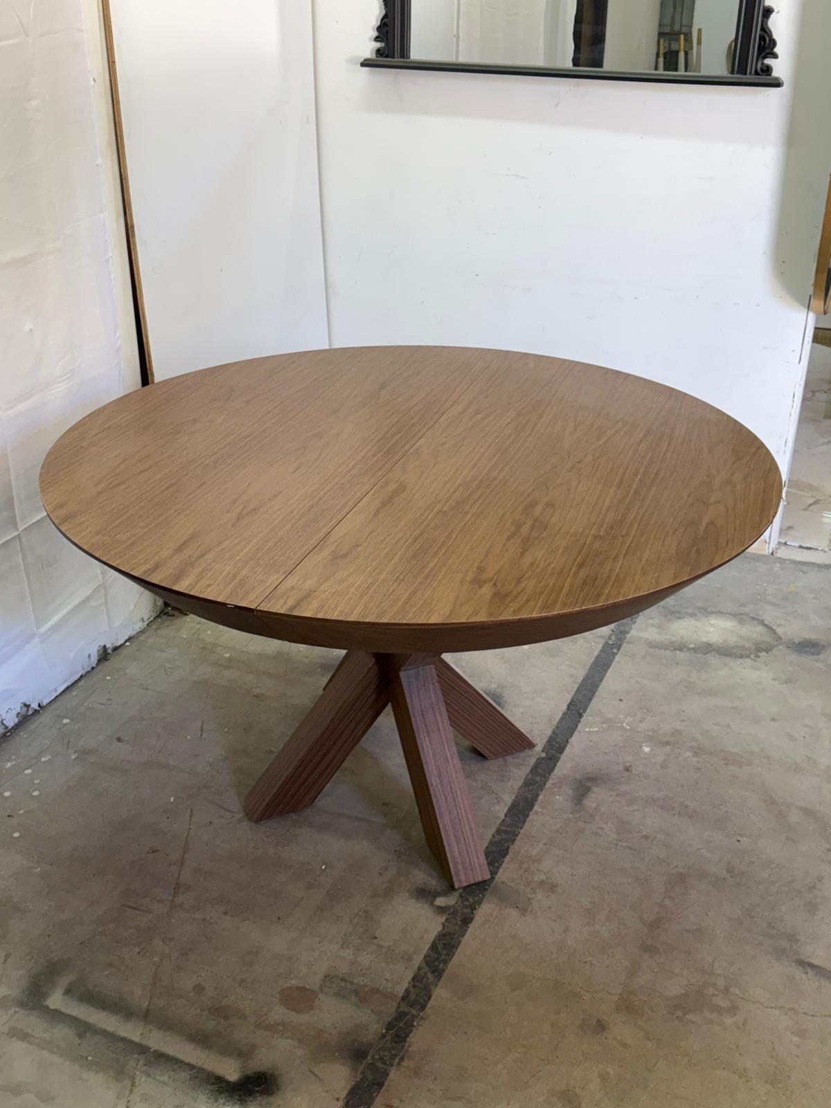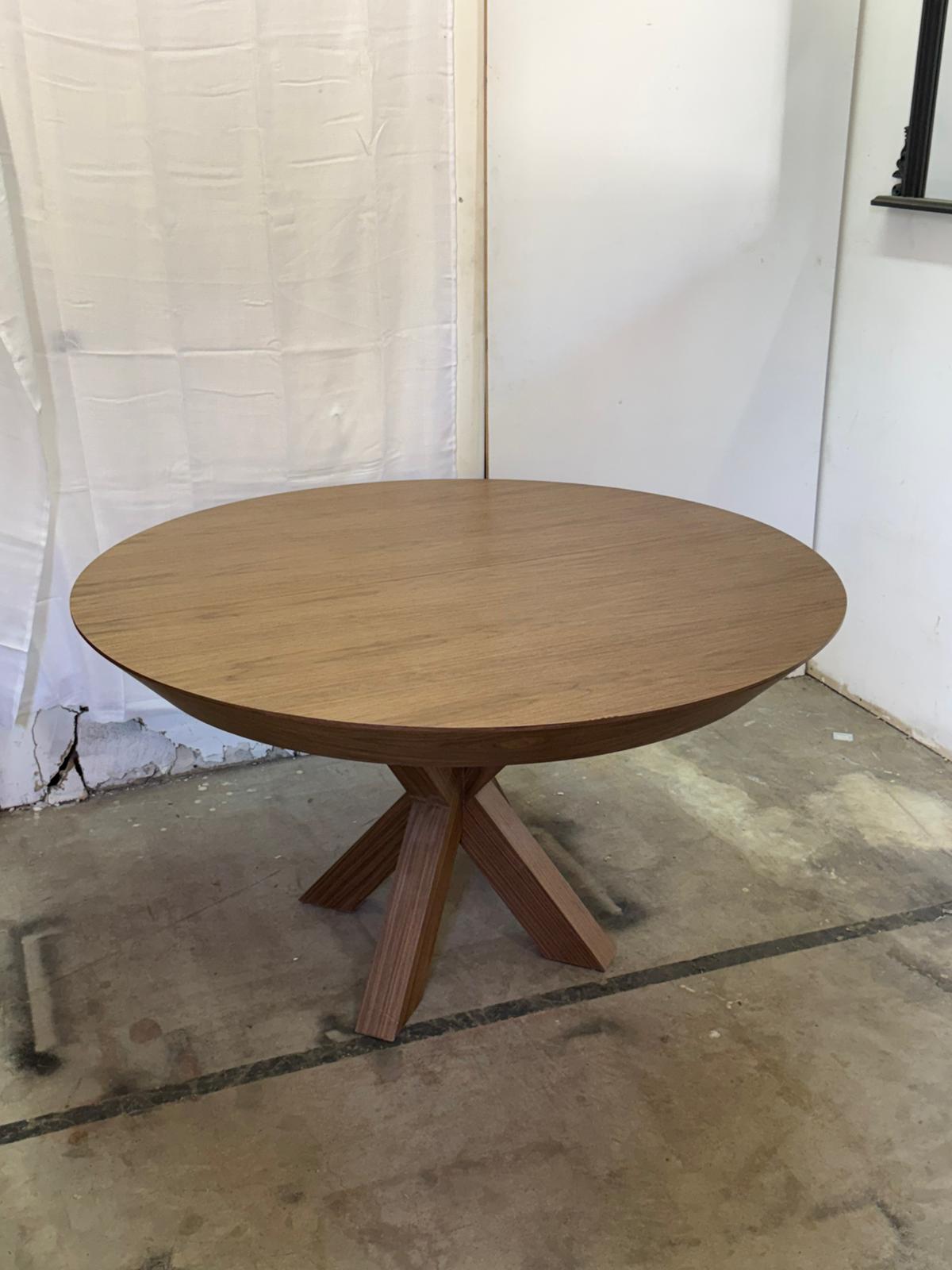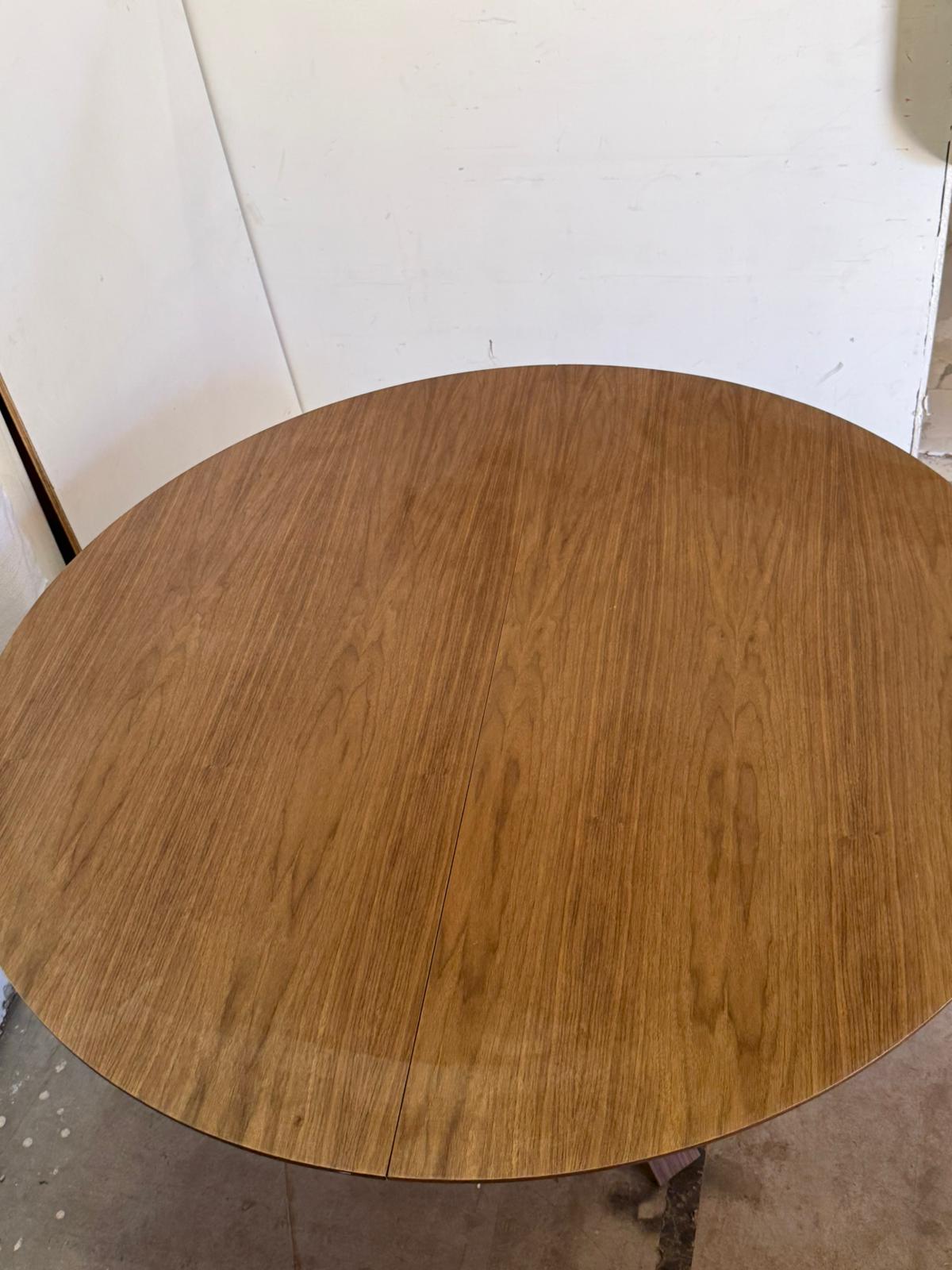 שולחן פינת אוכל מעשוי עץ פורמייקה בגוון אגוז.