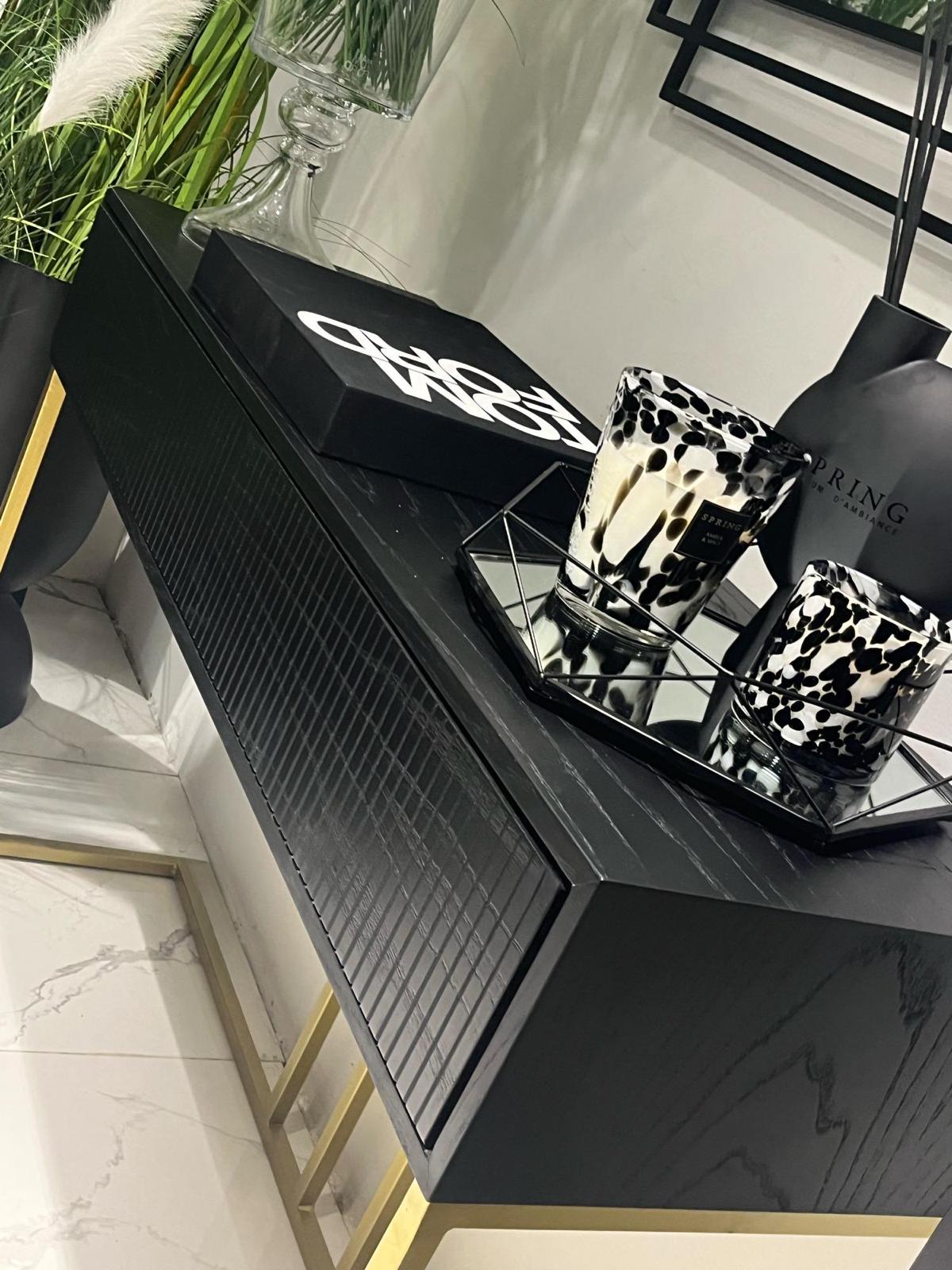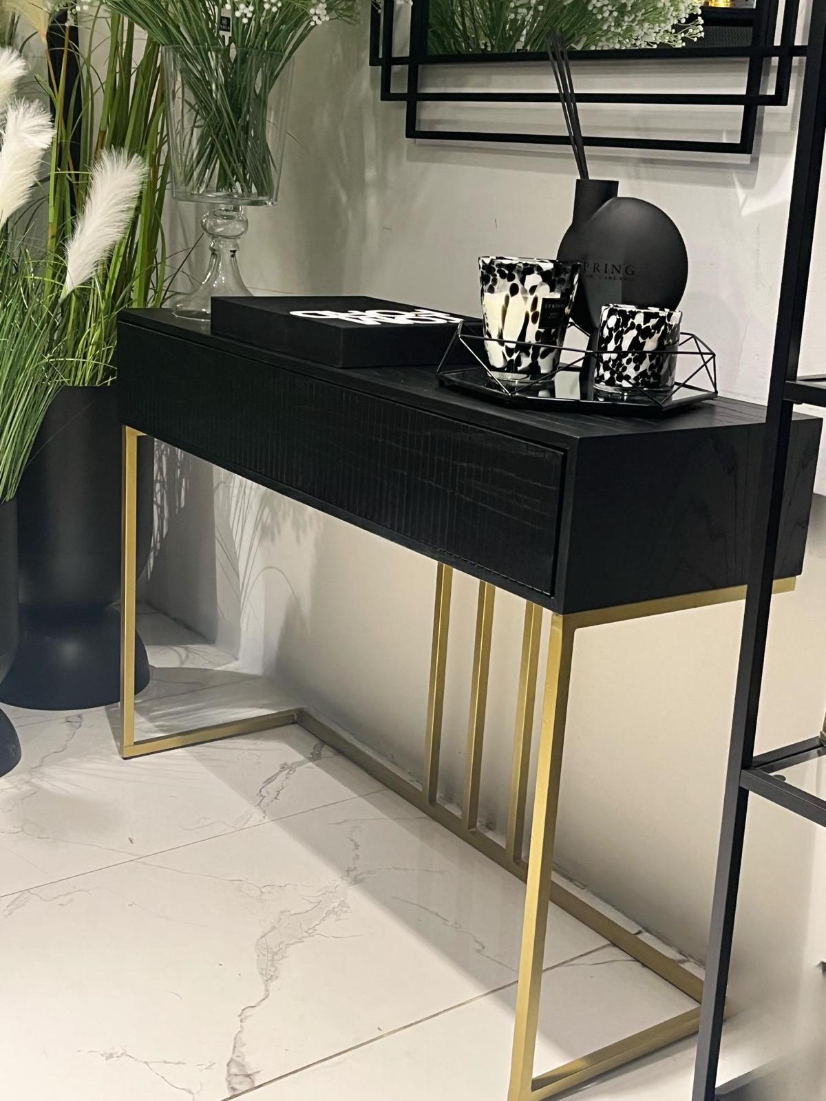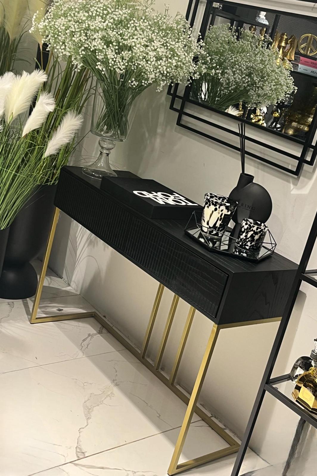 קונסולה דגם ” נופר ” גוון שחור עם רגליים בצבע זהב.