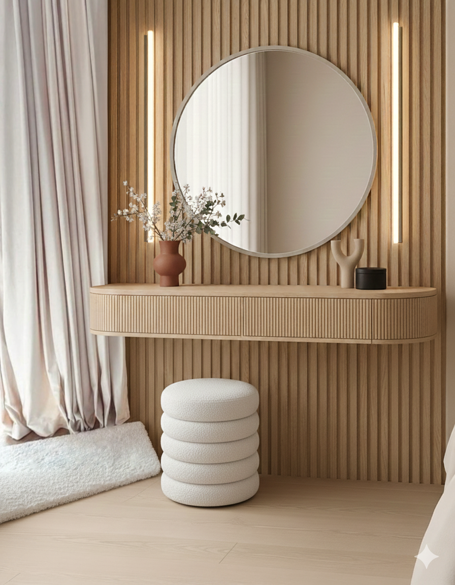 קונסולה מרחפת עשויה עץ איכותי, בצביעה בתנור בגוון חלק ואחיד.