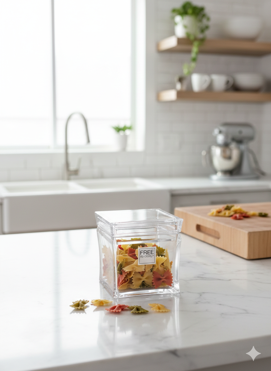 עיצוב מרובע ונקי, אידיאלי לארגון אלגנטי של פריטים במטבח או בבית.