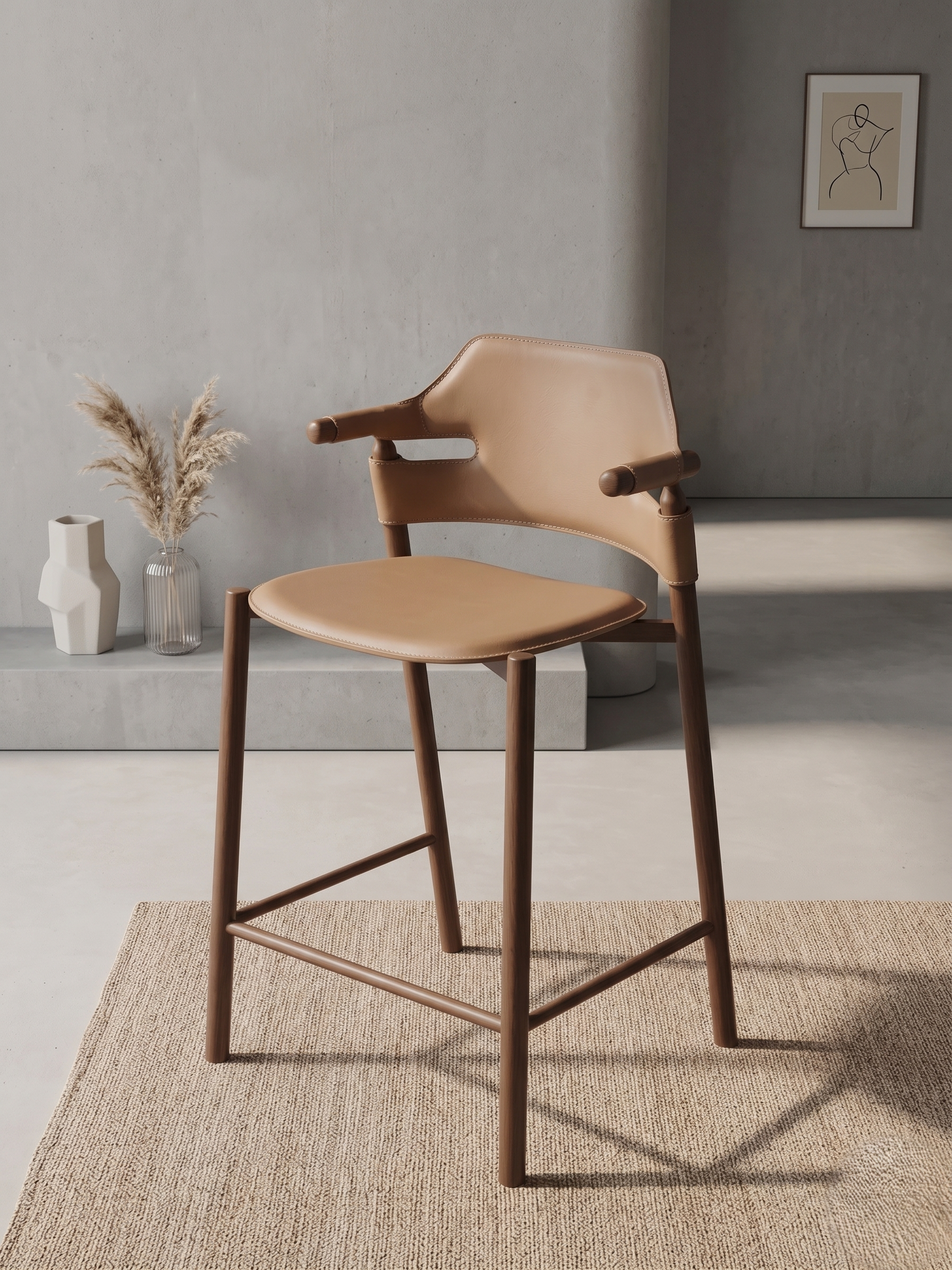כסא בר מעוצב עם מושב דמוי עור איכותי.