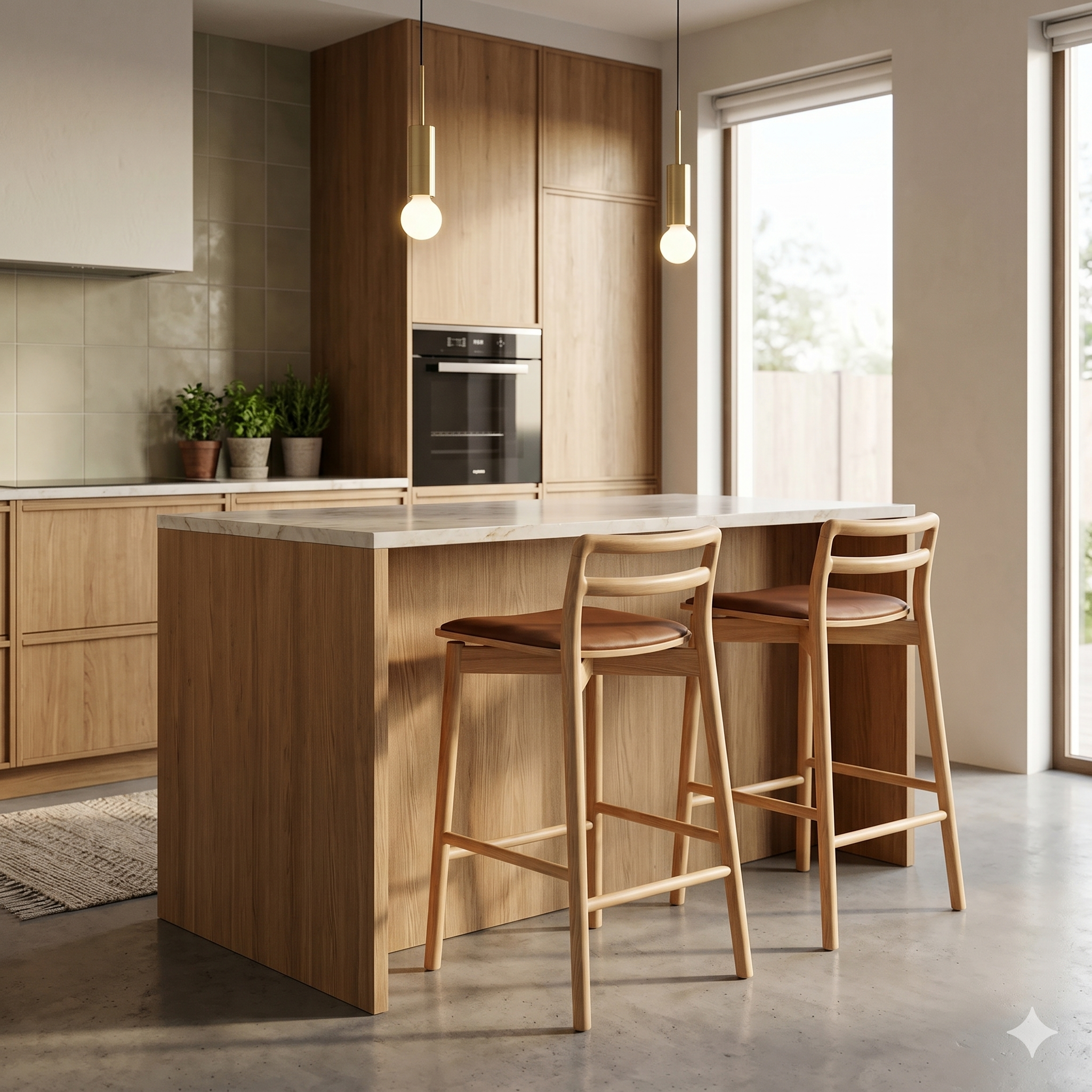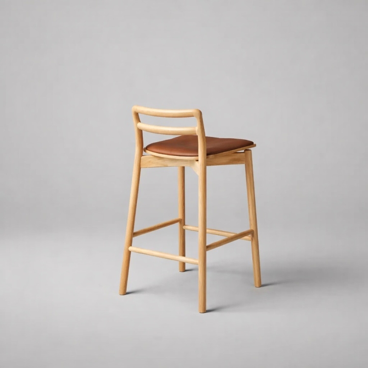 מינימליסטי ונקי עם מושב מרופד בעור חום עשיר למראה חמים ומודרני.