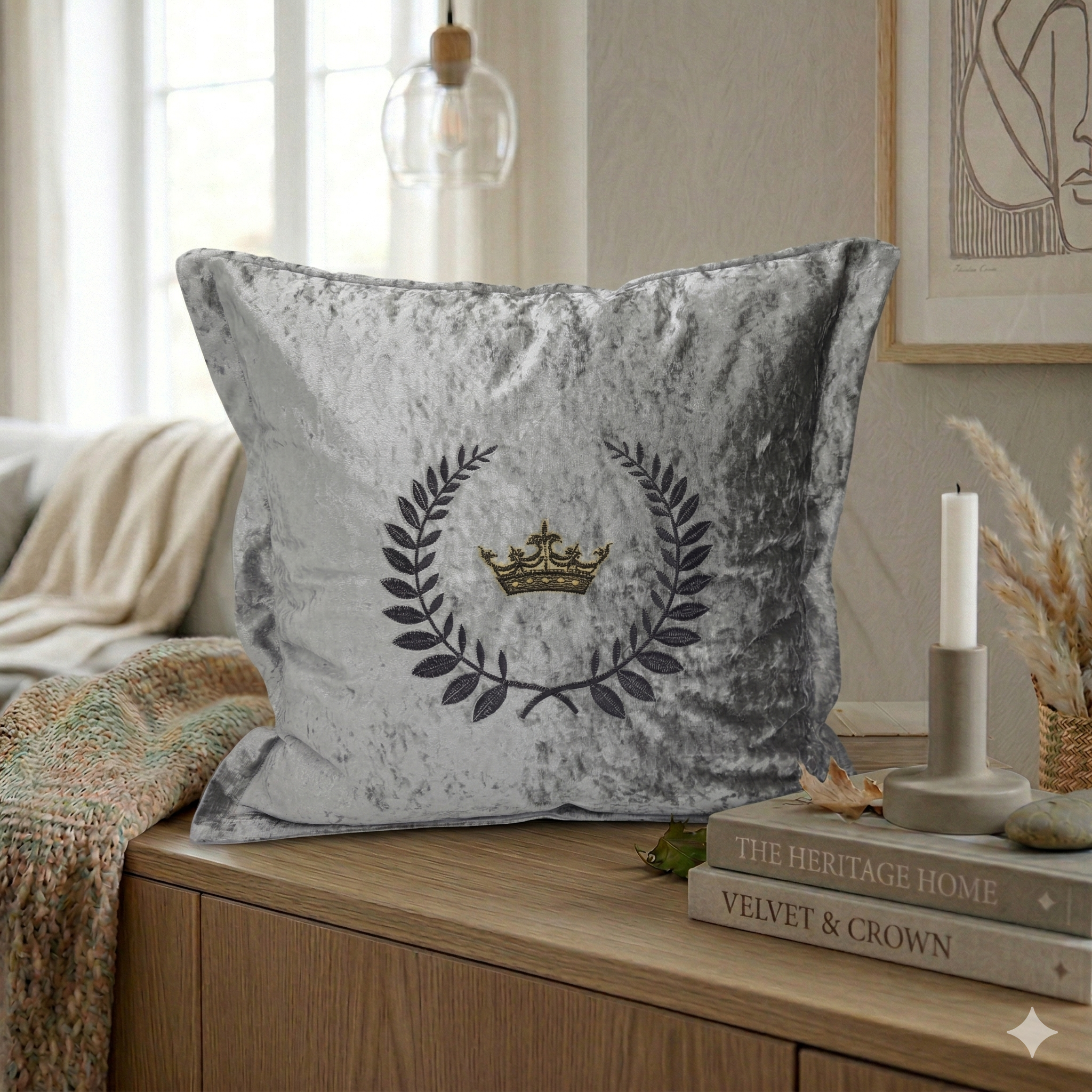 כרית נוי רקומה כתר כסוף