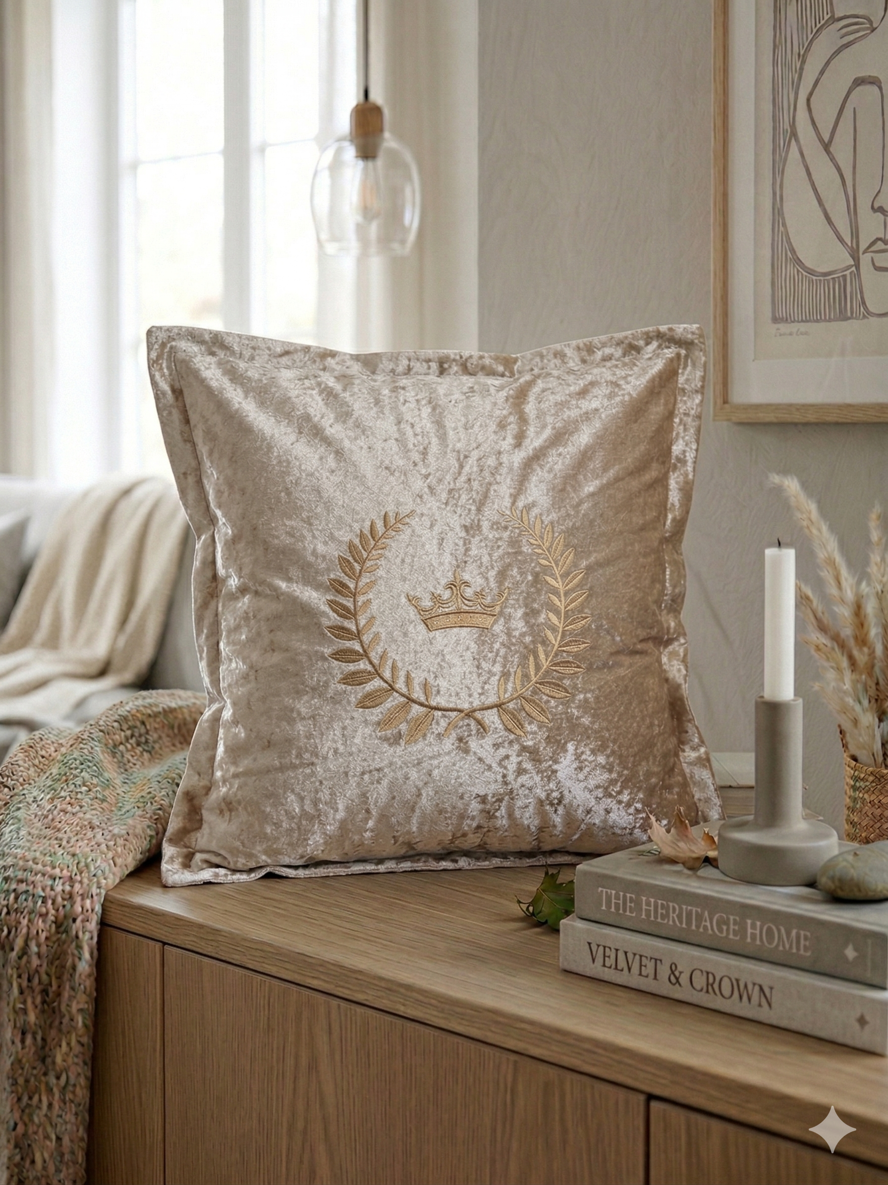 כרית נוי רקומה כתר שמפניה