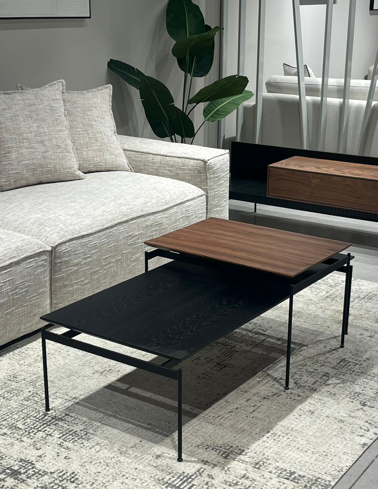 סט שולחנות בעיצוב מודרני ומוקפד, בגימור פלטיניום ייחודי שמעניק מראה אלגנטי ומבריק.