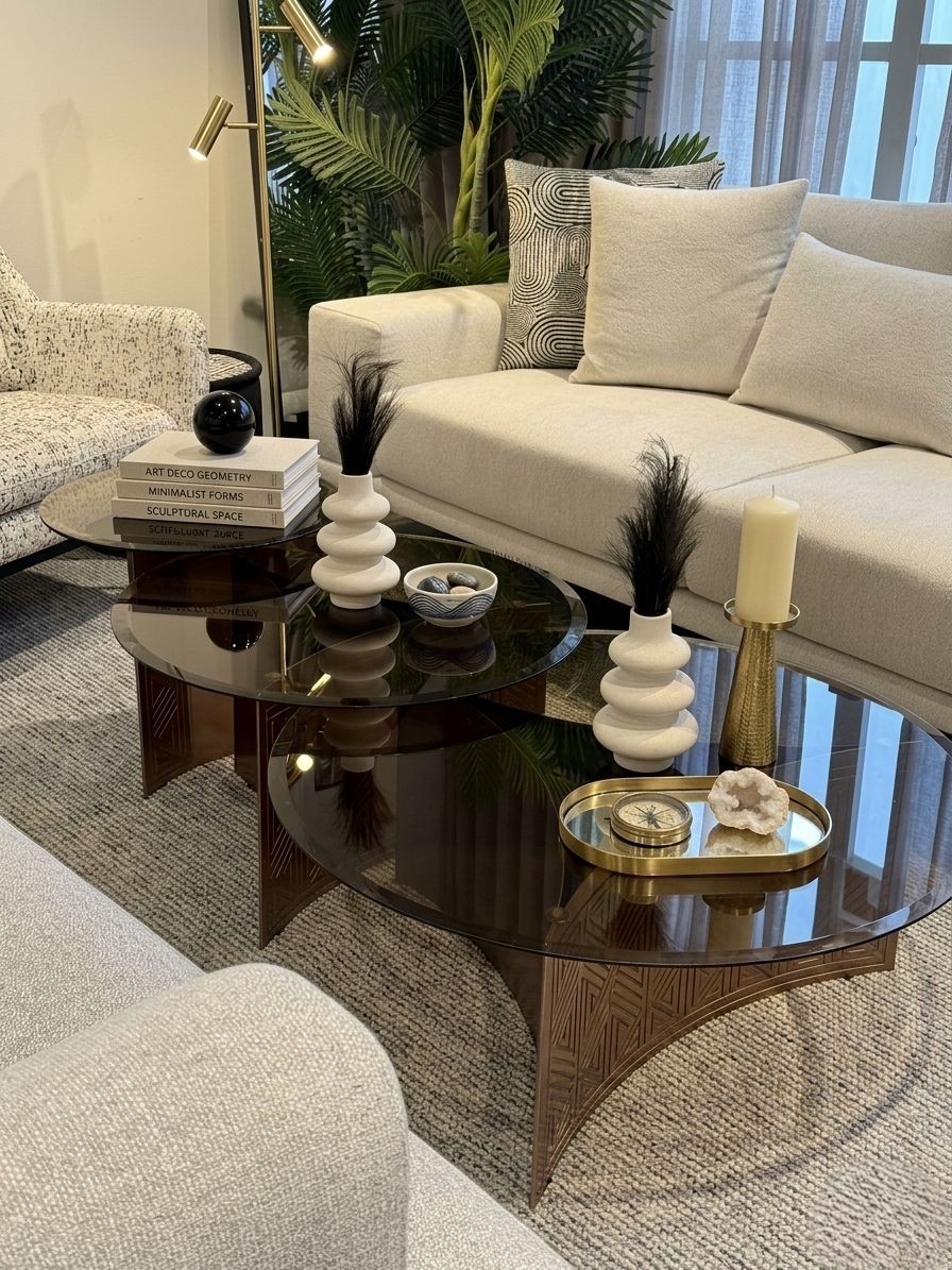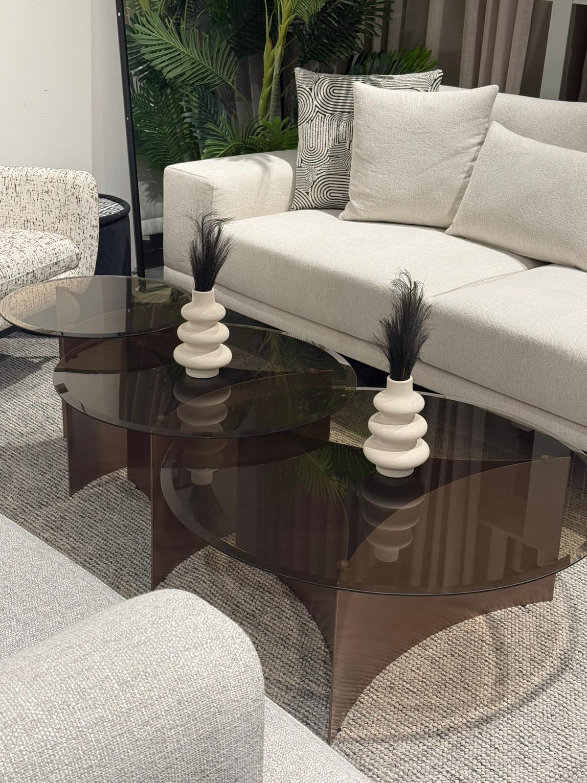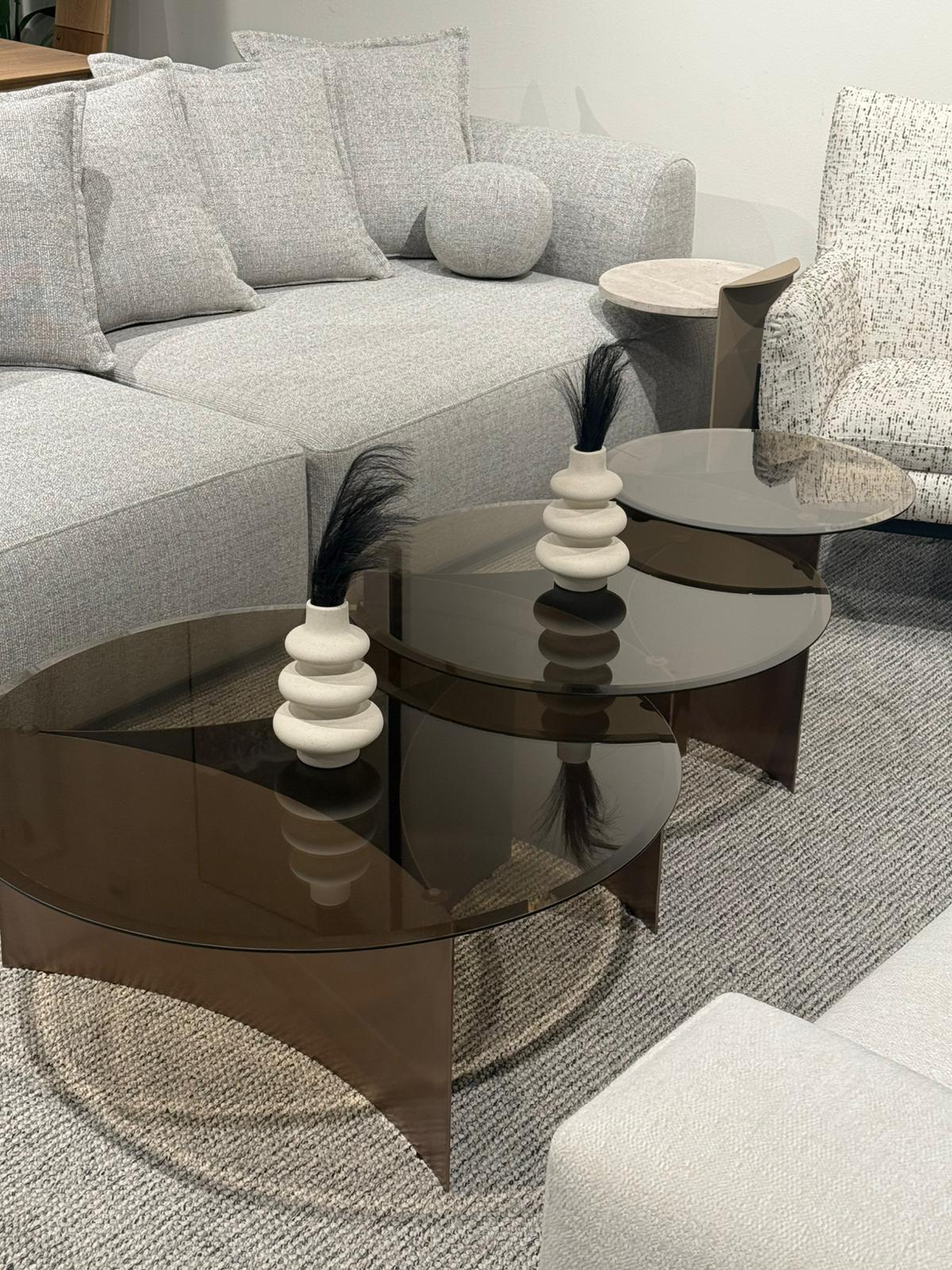 שלישיית שולחנות סלון עגולים בעיצוב אלגנטי ונועז, בשילוב זכוכית