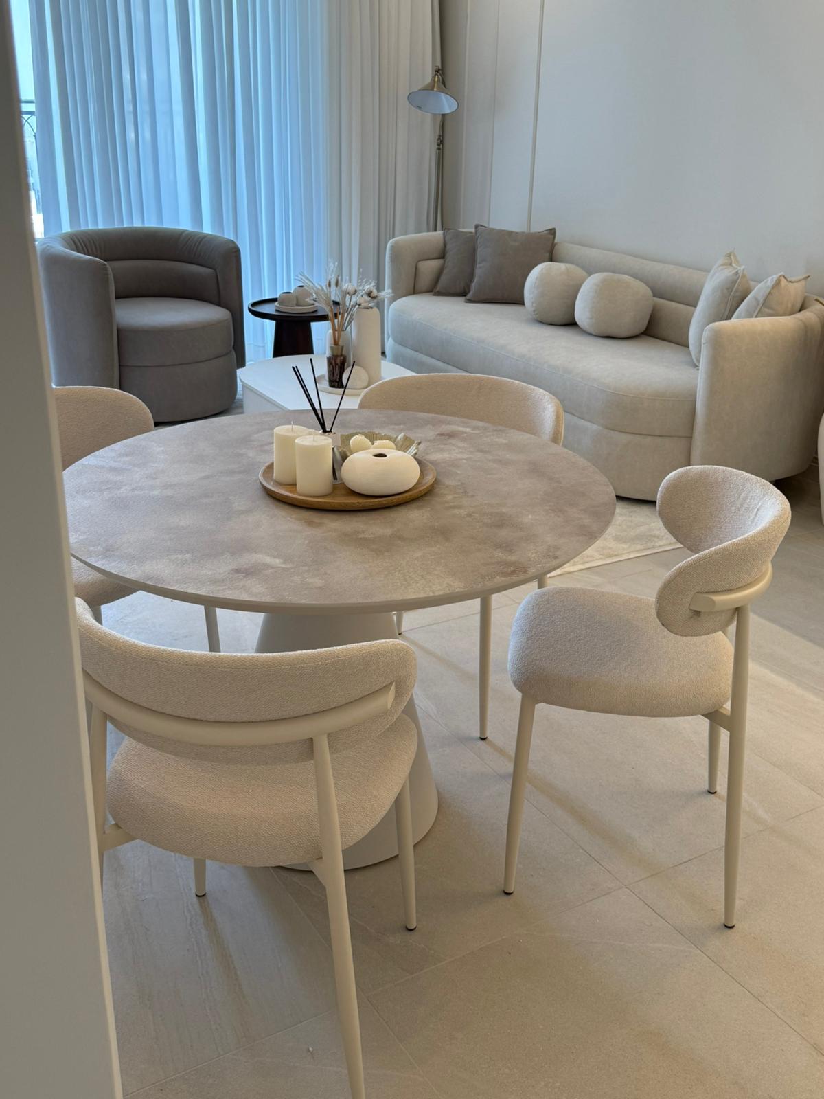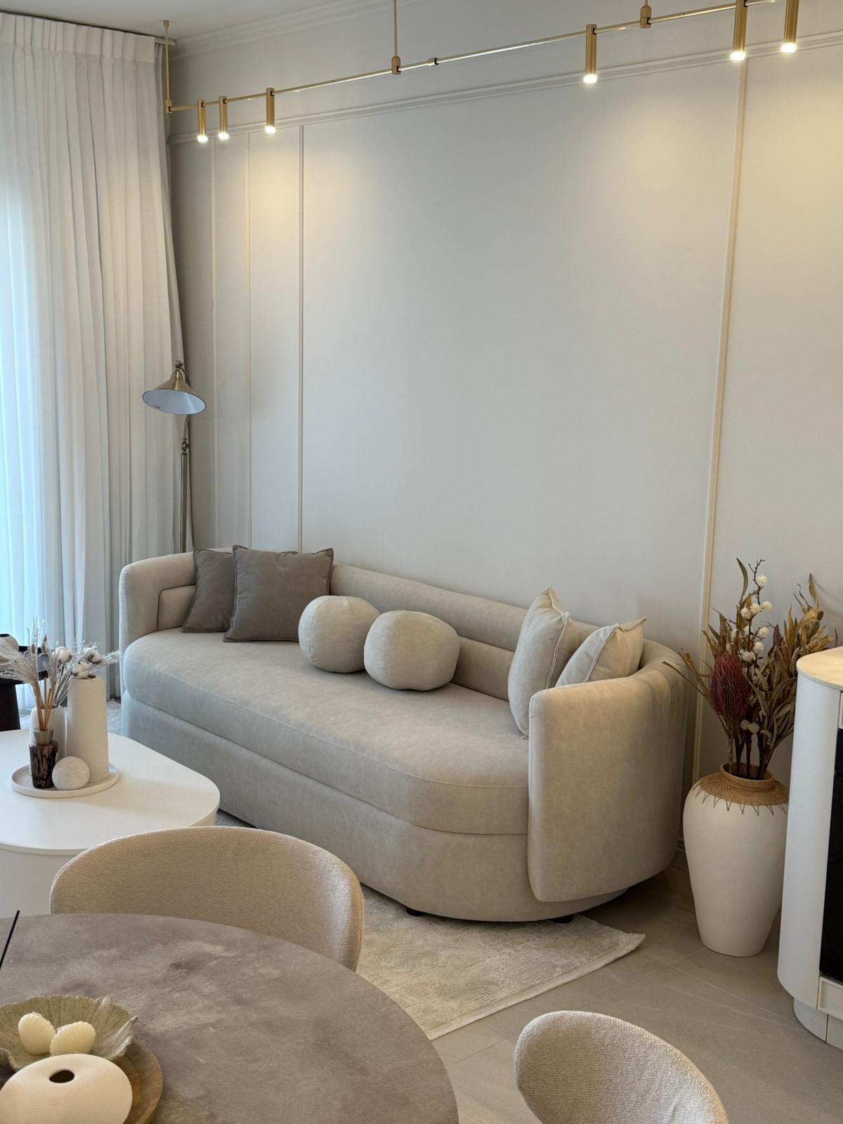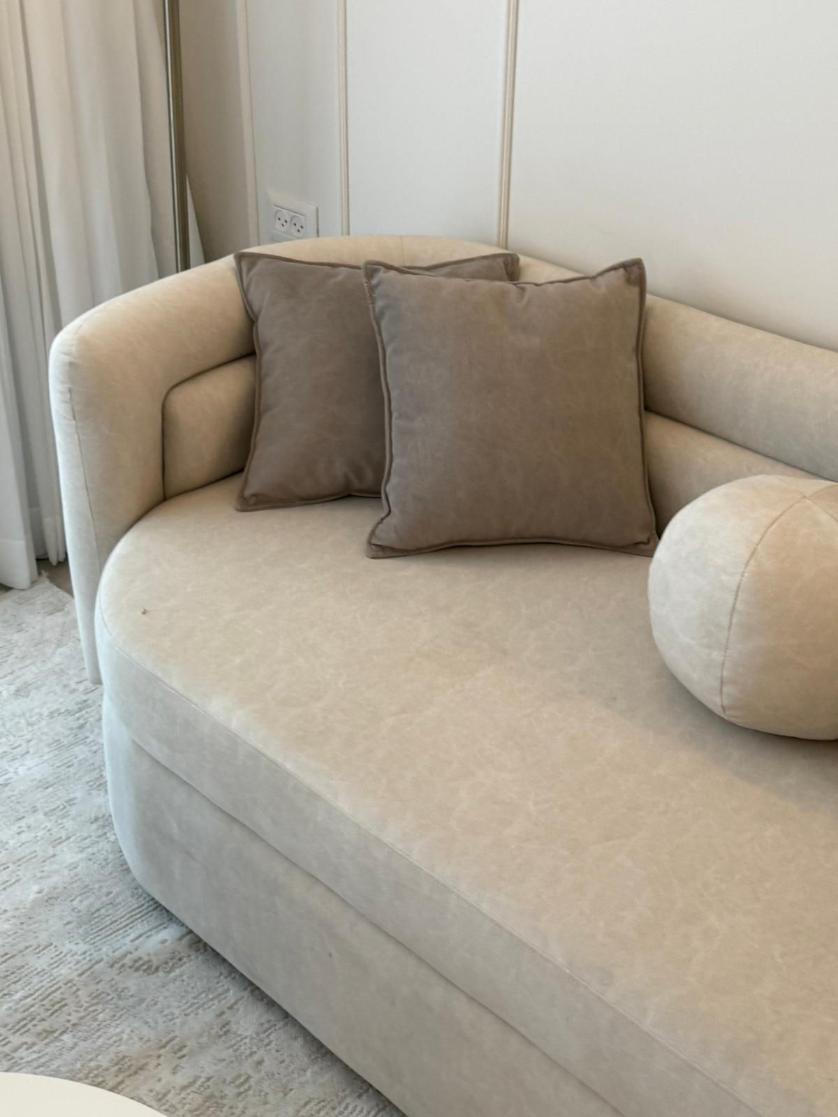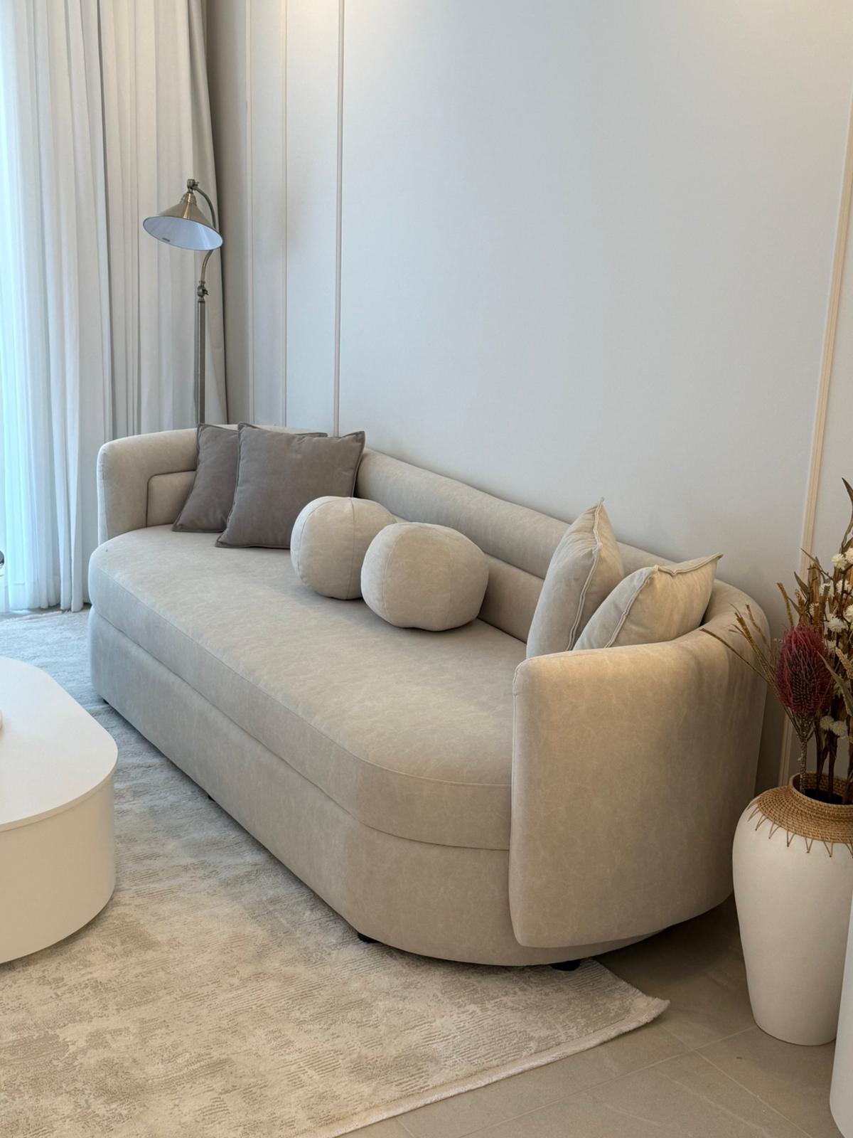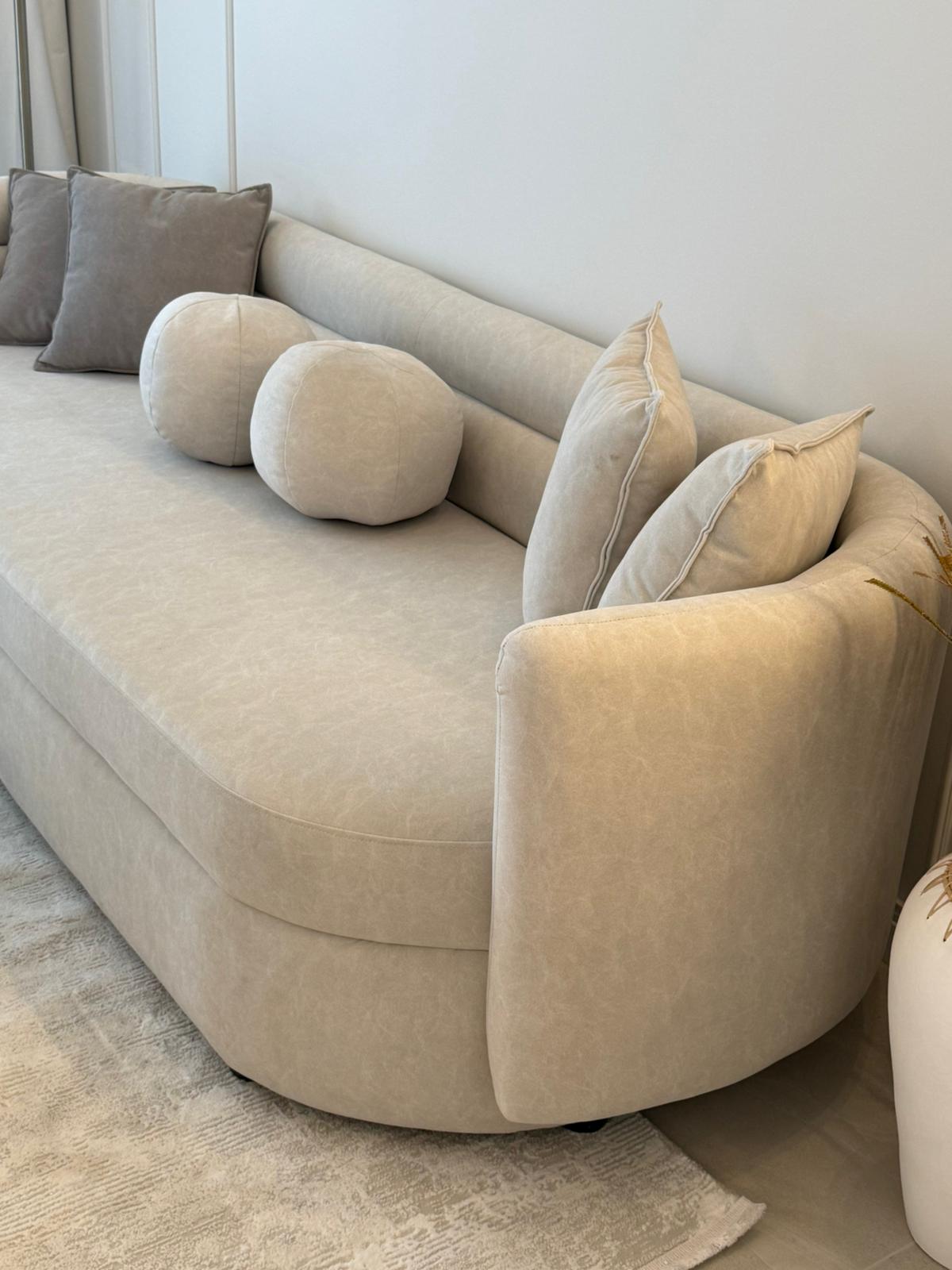 הכריות הדקורטיביות והעיצוב המעוגל מעניקים תחושת חמימות ורכות, לצד תחושת יוקרה ואלגנטיות.