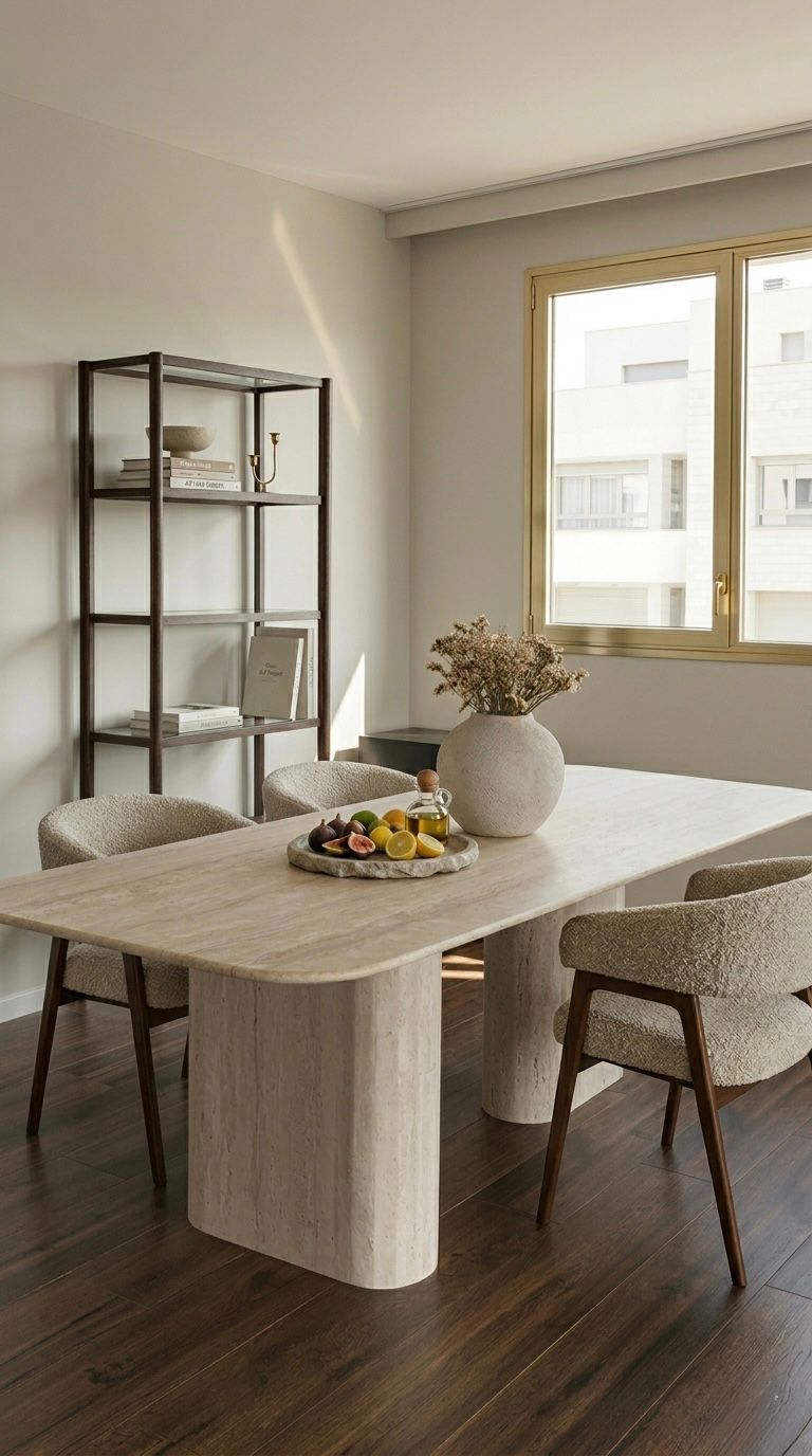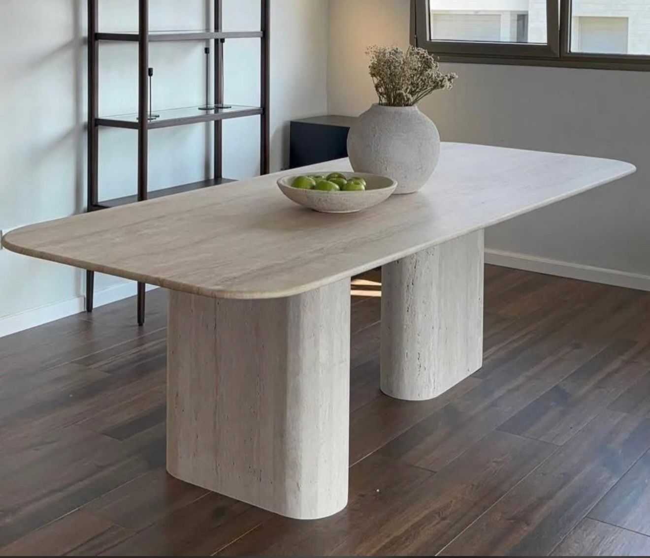 שולחן אוכל יוקרתי המשלב בסיס טרוונטין טבעי