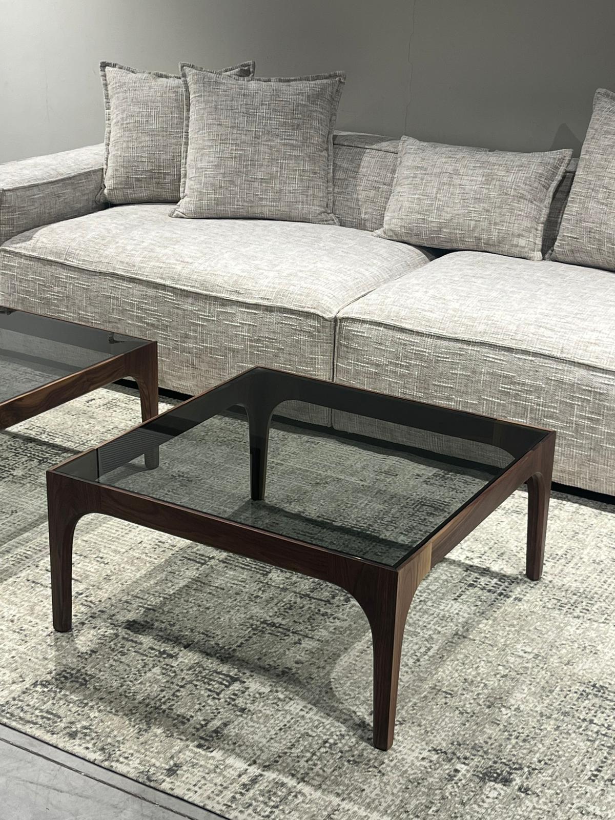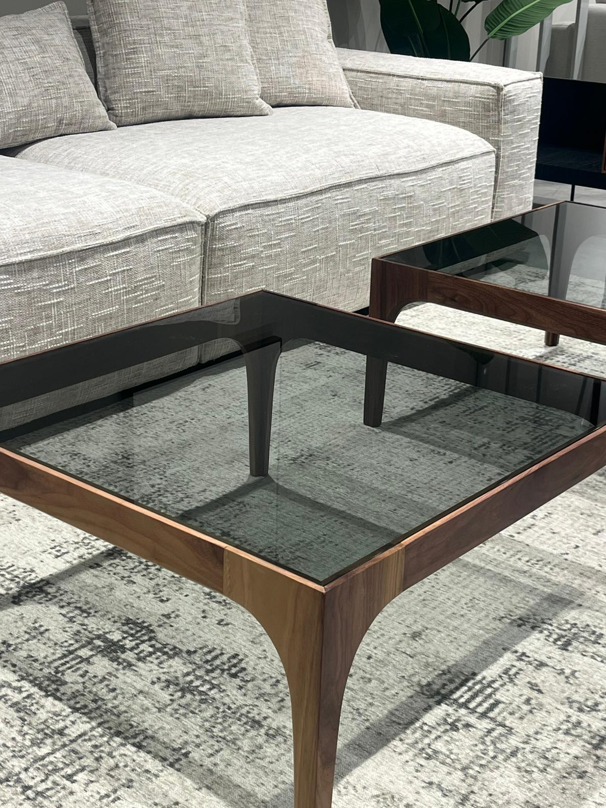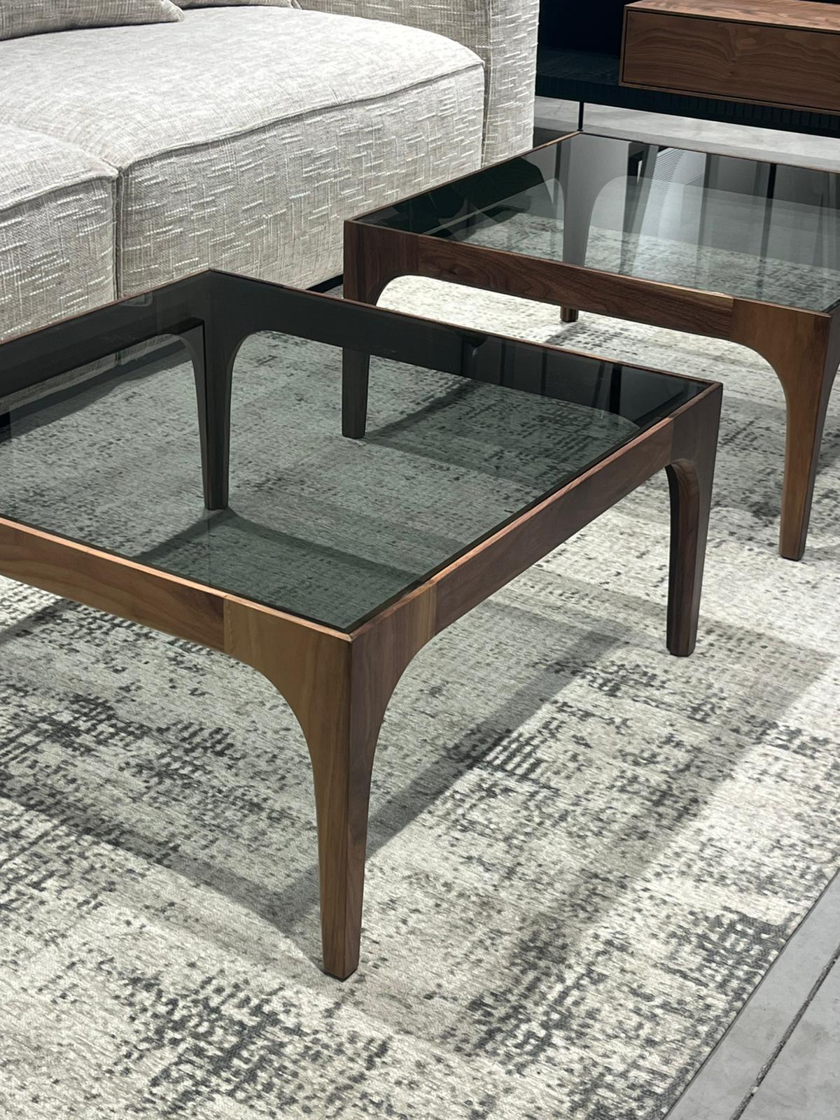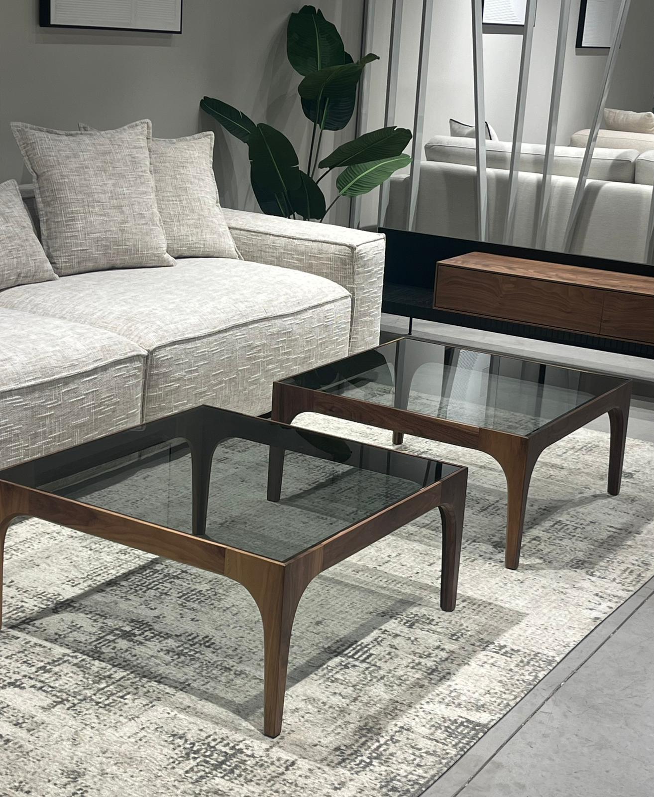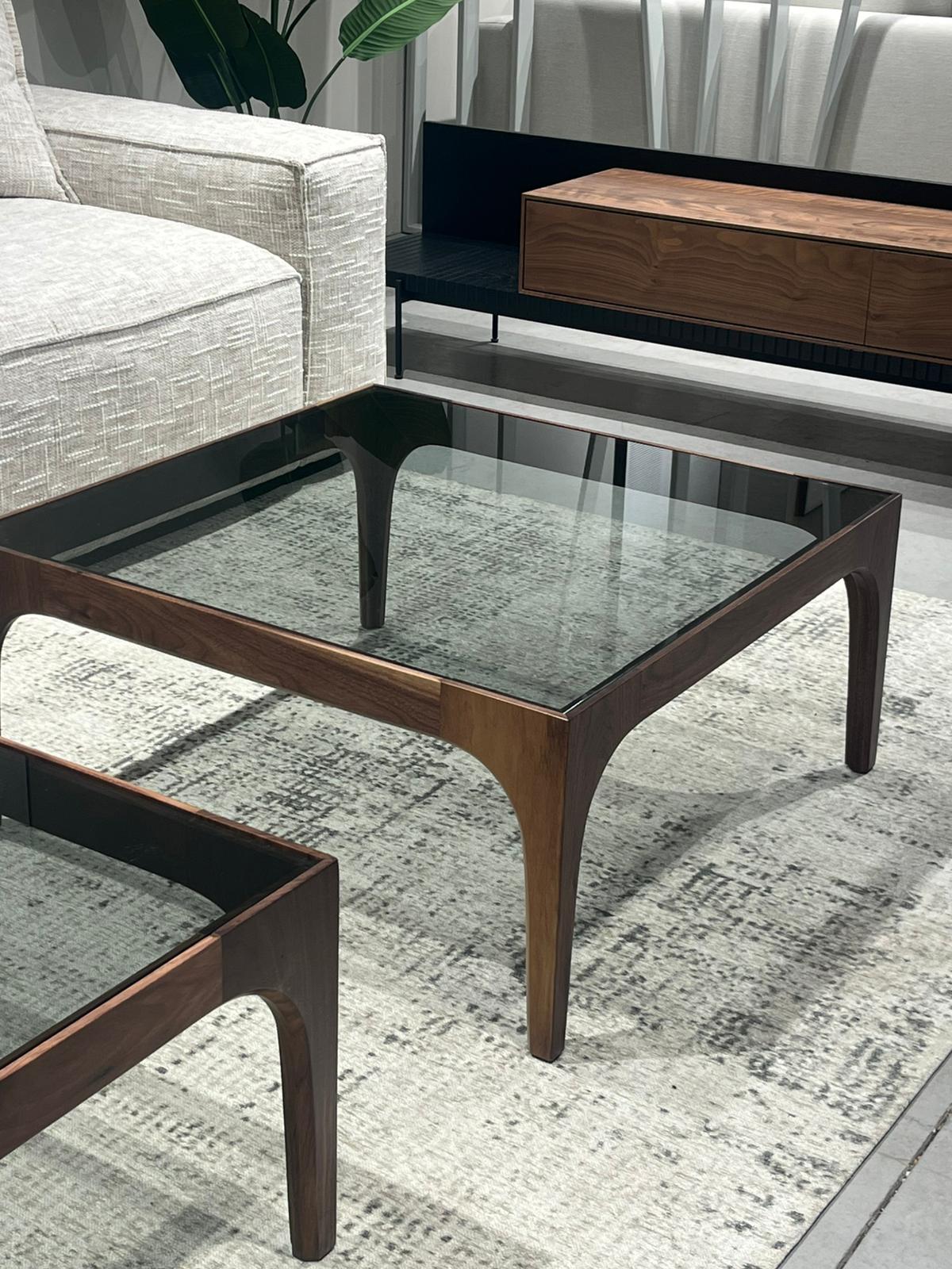 שולחן סלון בעיצוב אלגנטי ומרשים, עשוי עץ טיק בגוון אגוז עשיר, עם רמת גימור גבוהה במיוחד שמבליטה את האיכות בכל פרט.