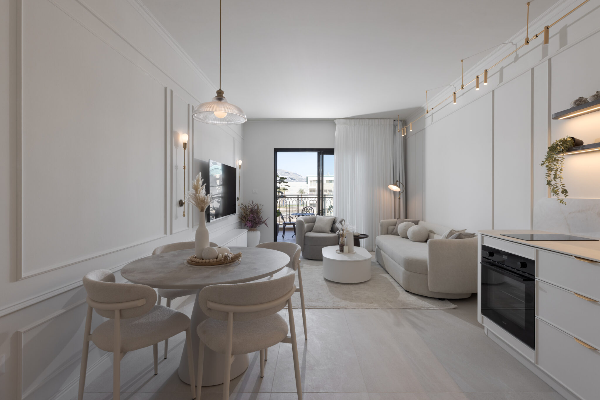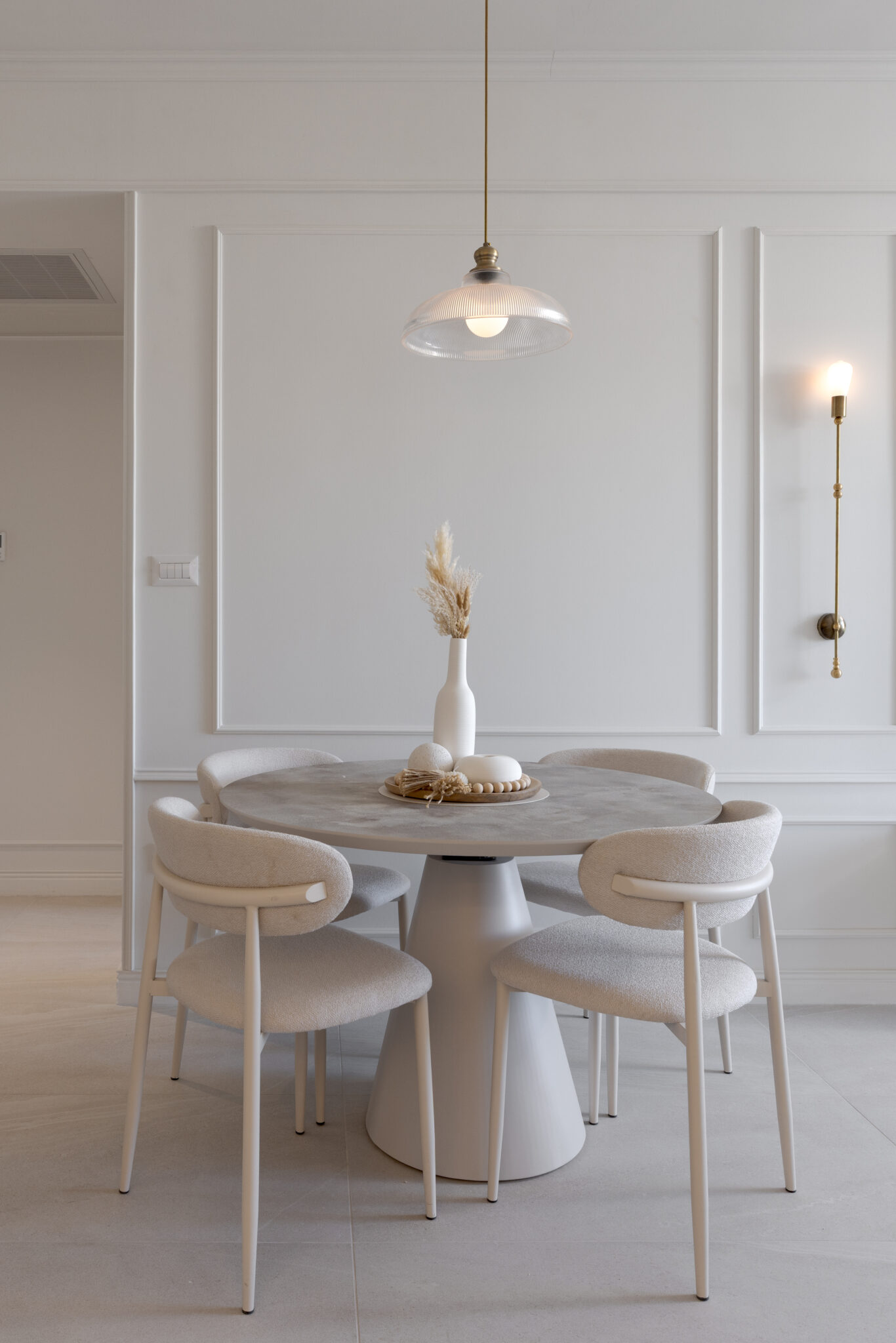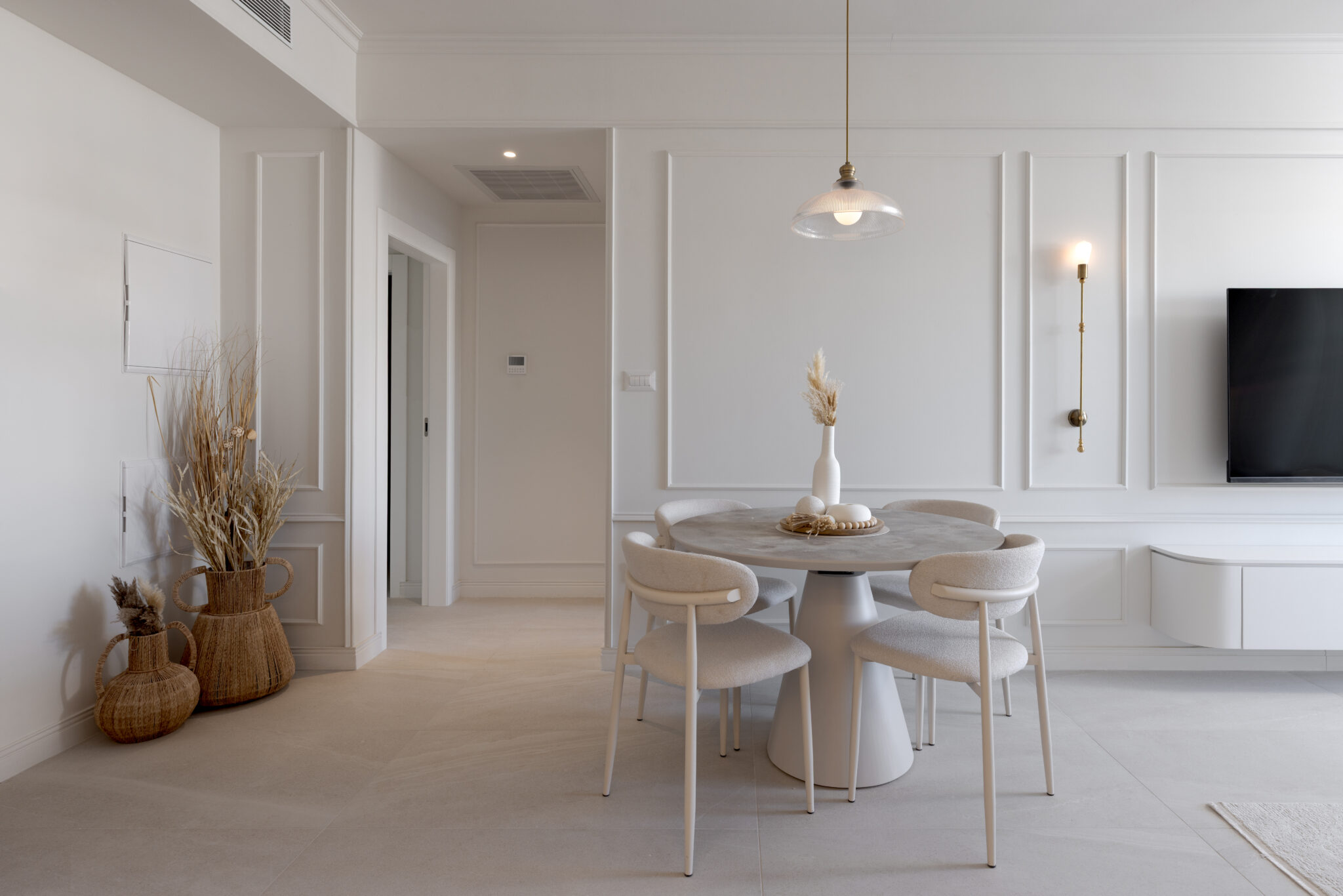 פינת אוכל אלגנטית ומודרנית, בעיצוב נקי ונעים לעין.