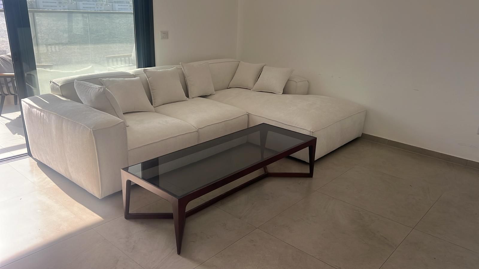 ועליה משטח זכוכית שקופה שמוסיפה תחושת אווריריות ויוקרה.